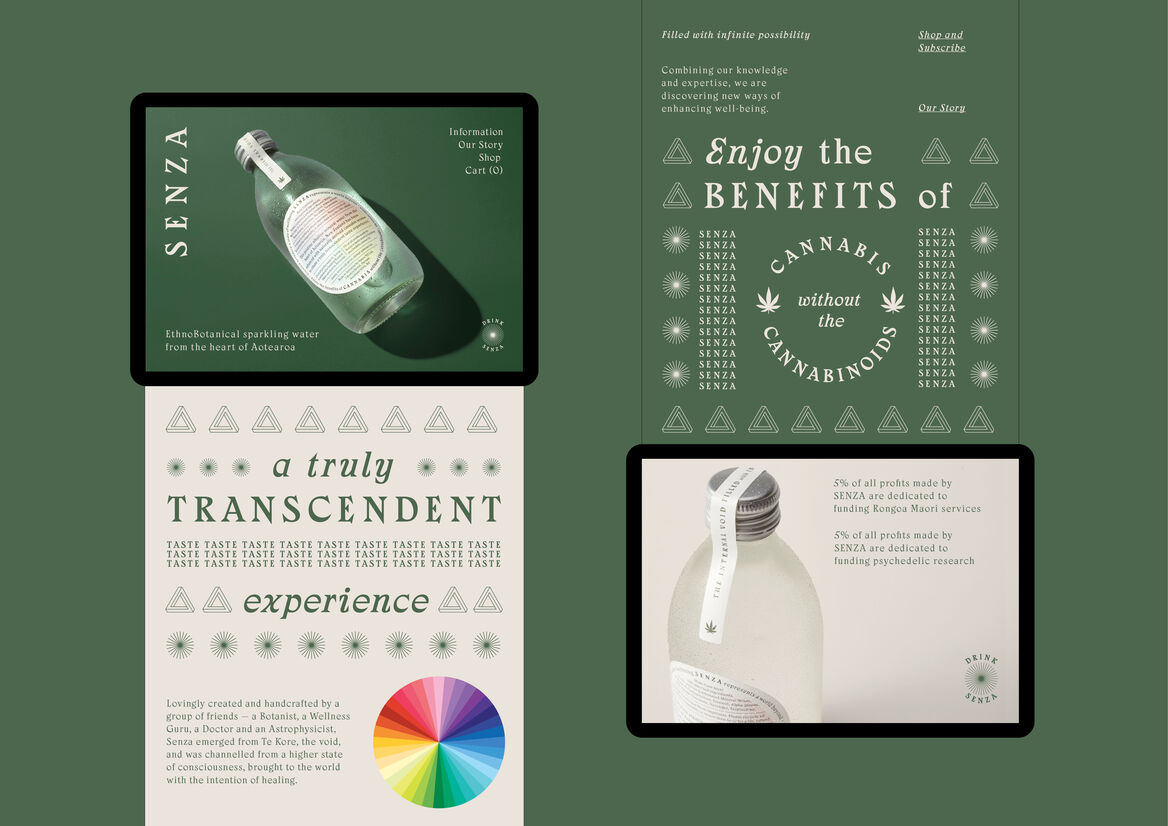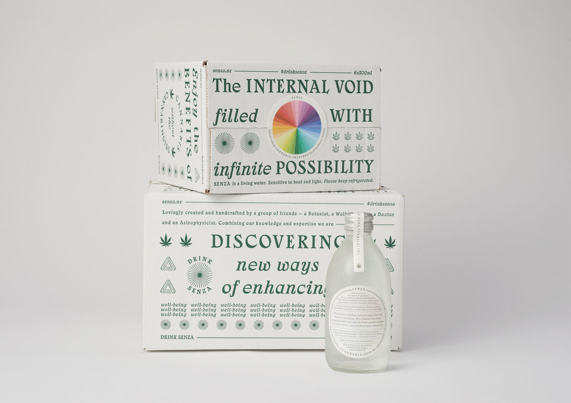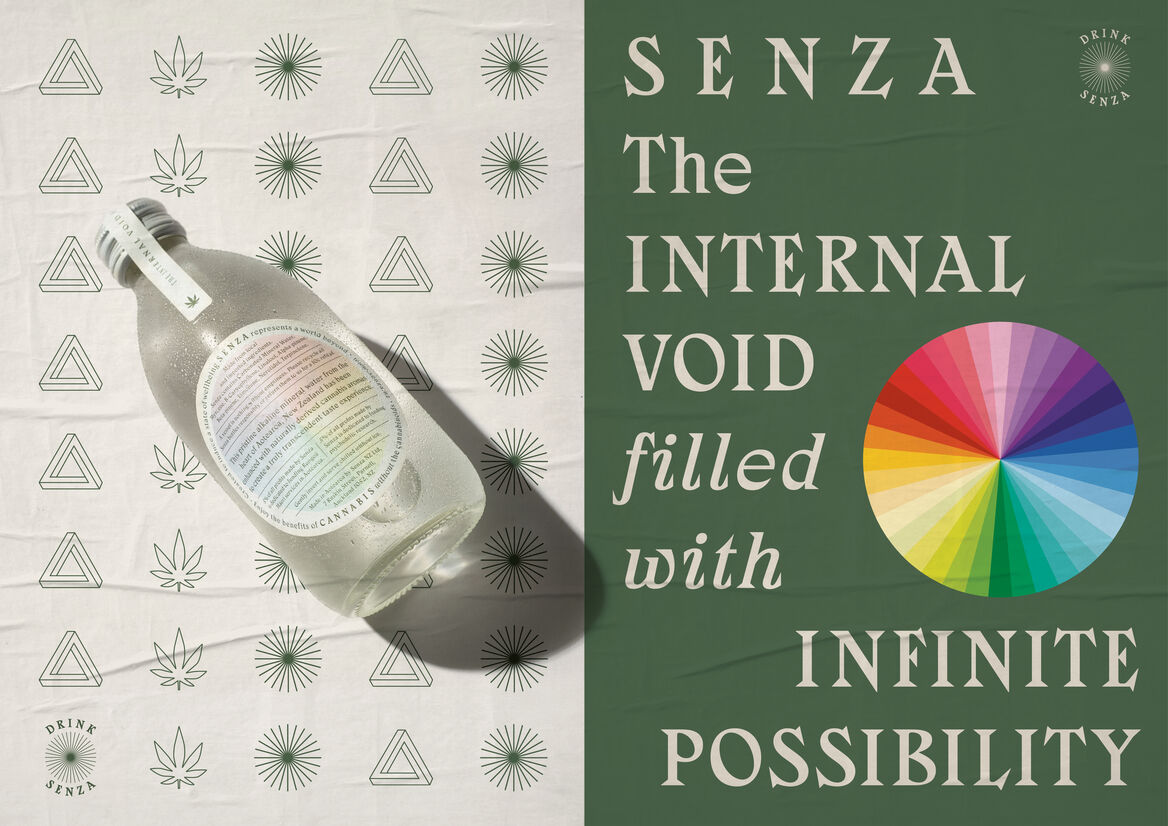 BRIEF: INDUCE A STATE OF WELLBEING — Senza is a cannabis-inspired EthnoBotanical sparkling water, the first of its kind, a genre-defining concept. Infused with organic, adaptogenic, plant-derived terpenes designed to induce a state of wellbeing. Senza is one of the first products in the emerging field known as cannabimimetics (good luck saying it). Through harnessing convergent evolution, Senza gives you the benefits of cannabis without the cannabinoids. Senza is an artisanal product made with aroha and a deep reverence for the plants and water that go into each bottle. Lovingly created and handcrafted by a group of friends — a Botanist, a Wellness Guru, a Doctor and an Astrophysicist — who’ve combined their knowledge and expertise, to discover new ways of enhancing well-being.