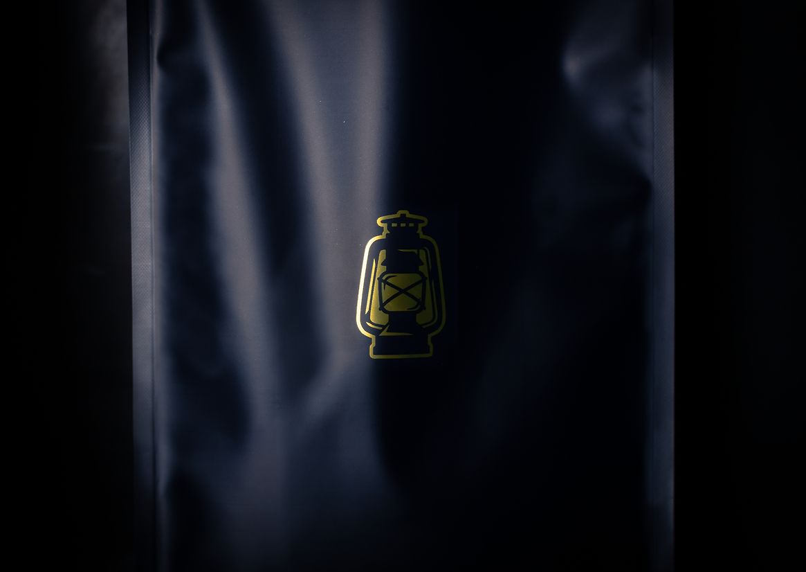 The design for Folk Coffee features a glowing gold lantern, surrounded and contrasted by a moody blue tone to evoke the idea of a beacon in the night - something to be drawn to, to find community and connection.