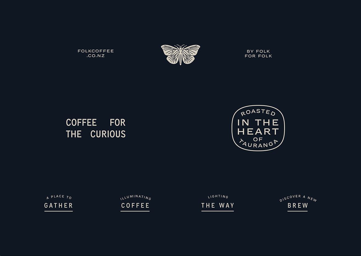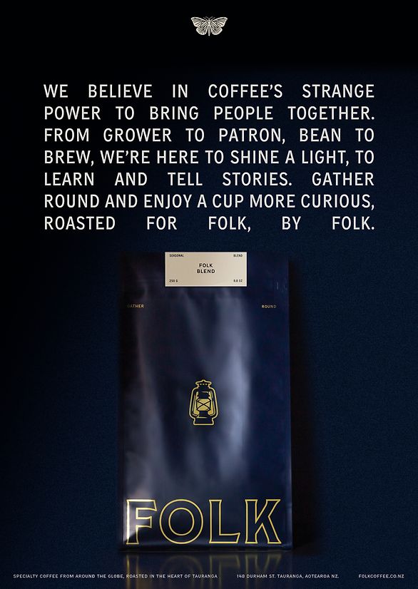 The strategy for Folk Coffee was straightforward. It involved translating the existing strong brand and community focus into a visual identity. The concept revolved around the metaphor of the lantern, symbolising attraction, connection, and the warmth of community, resonating with our client's love for being fully present in the moment and environment, like being around a campfire. The idea was to depict coffee as a connection point between people, fostering relationships and community. Good coffee, according to Folk, should be accessible and educational, empowering the community. The brand needed to embody these values, making the strategy clear and easy to implement.
