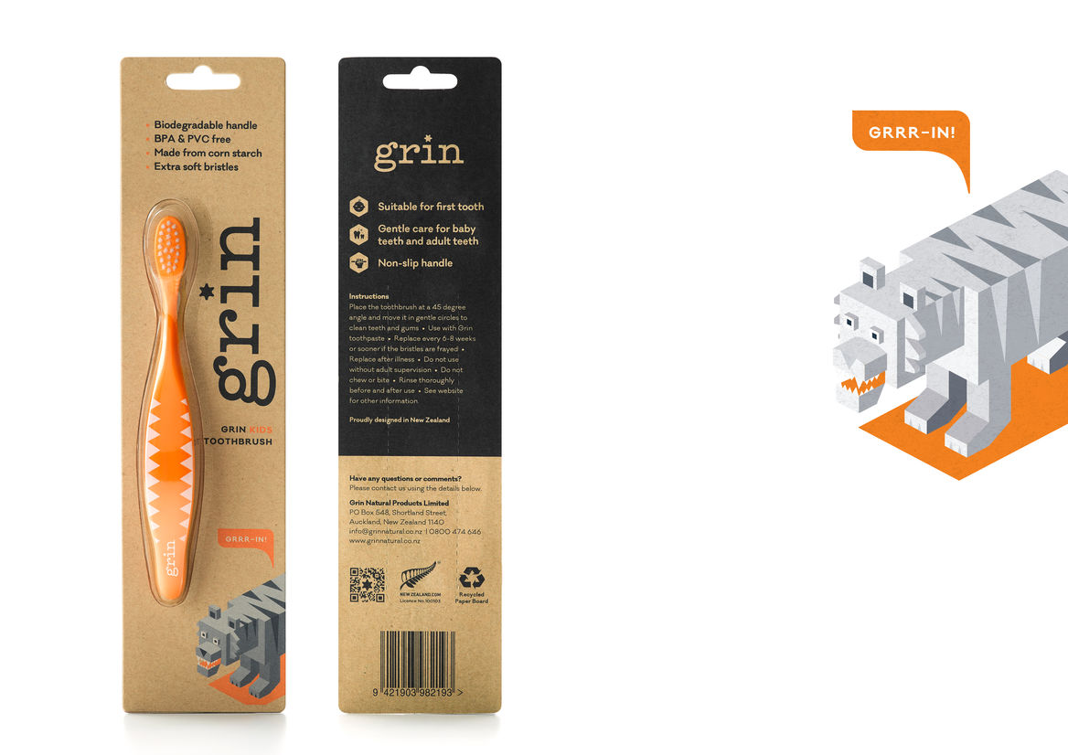 Graphic Business Communication Colour Award Graphics Design Communication Design Craft Editorial and Books Environmental Graphics Large Brand Identity Packaging Self Promotion Small Brand Identity Student & Academic Graphics Animation Digital Film Graphic Moving Image (archived 2025) Product Social Good Award Spatial Toitanga Value of Design Award User Experience Award (archived 2019) All categories Business Communication Colour Award Graphics Design Communication Design Craft Editorial and Books Environmental Graphics Large Brand Identity Packaging Self Promotion Small Brand Identity Student & Academic Graphics All years 2025 2024 2023 2022 2021 2020 2019 2018 2017 2016 2015 2014 2013 2012 2011 2010 Studio A-Z DNA 79 Grin Kids Toothbrushes 2018 Packaging Credits Pou Auaha / Creative Director Phil Dunstan-Brown Ngā Kaimahi / Team Members Phil.Dunstan-Brown, Crystal Lin, Vanessa Gourrinat, Scott Newlands Client Grin Natural Products