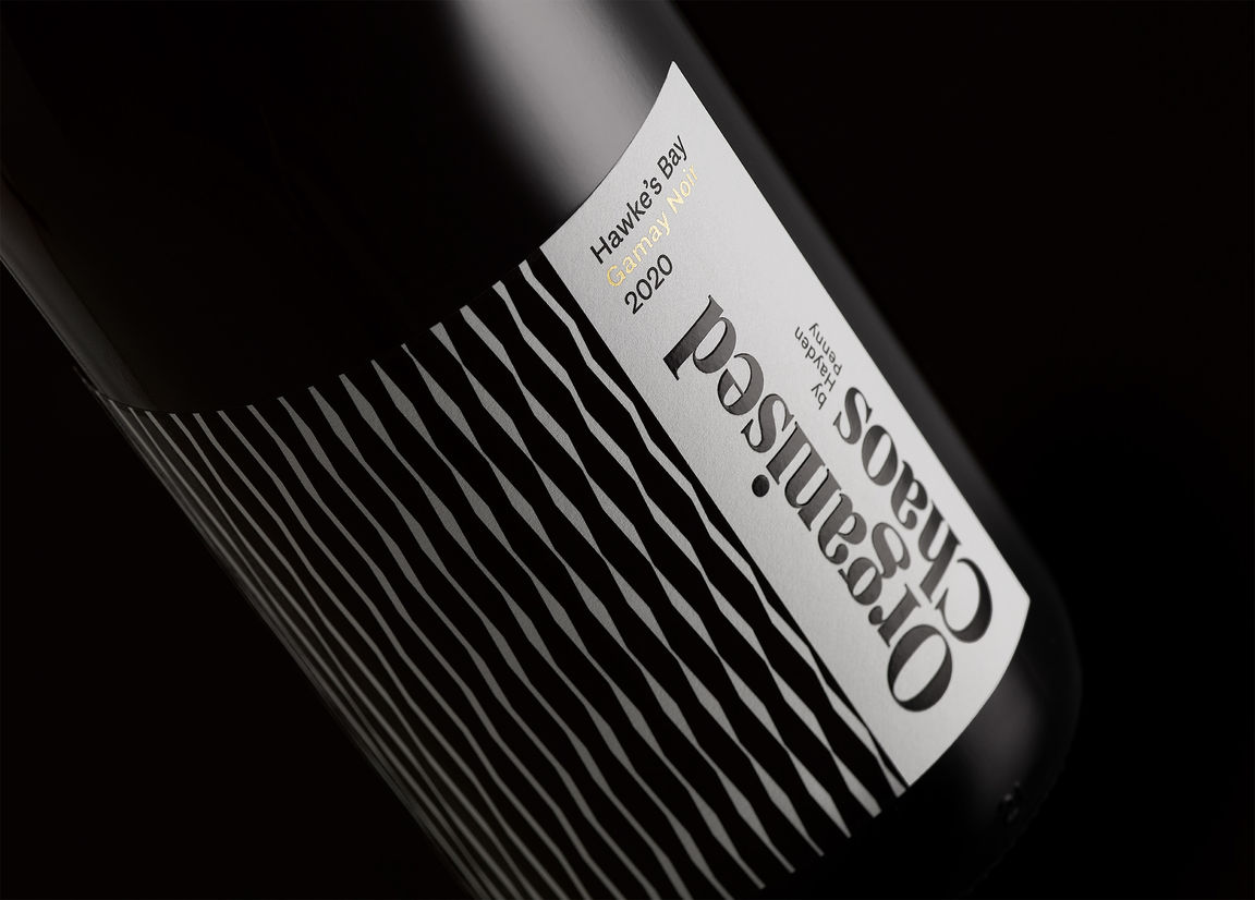 Pattern recognition. Independent Hawke’s Bay Winemaker and viticulturist Hayden Penny conceived Organised Chaos as a wine that celebrates the unpredictable aspects of nature, the seasons, and the journey of life. Sold mostly in boutique wine shops, on-premise and online, the project was unshackled from regular requirements for ’shelf presence’, name recognition, and regional name-checking, allowing freedom to focus on memorability. How would someone describe it to a friend?