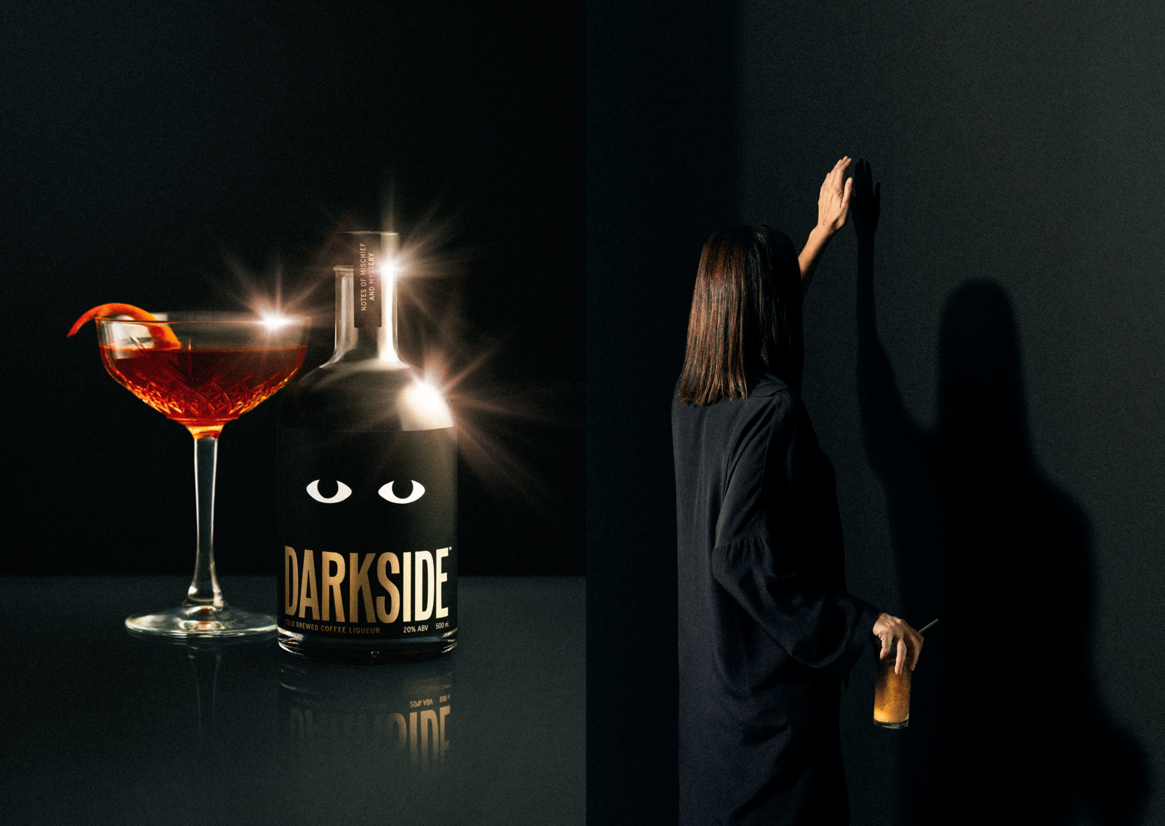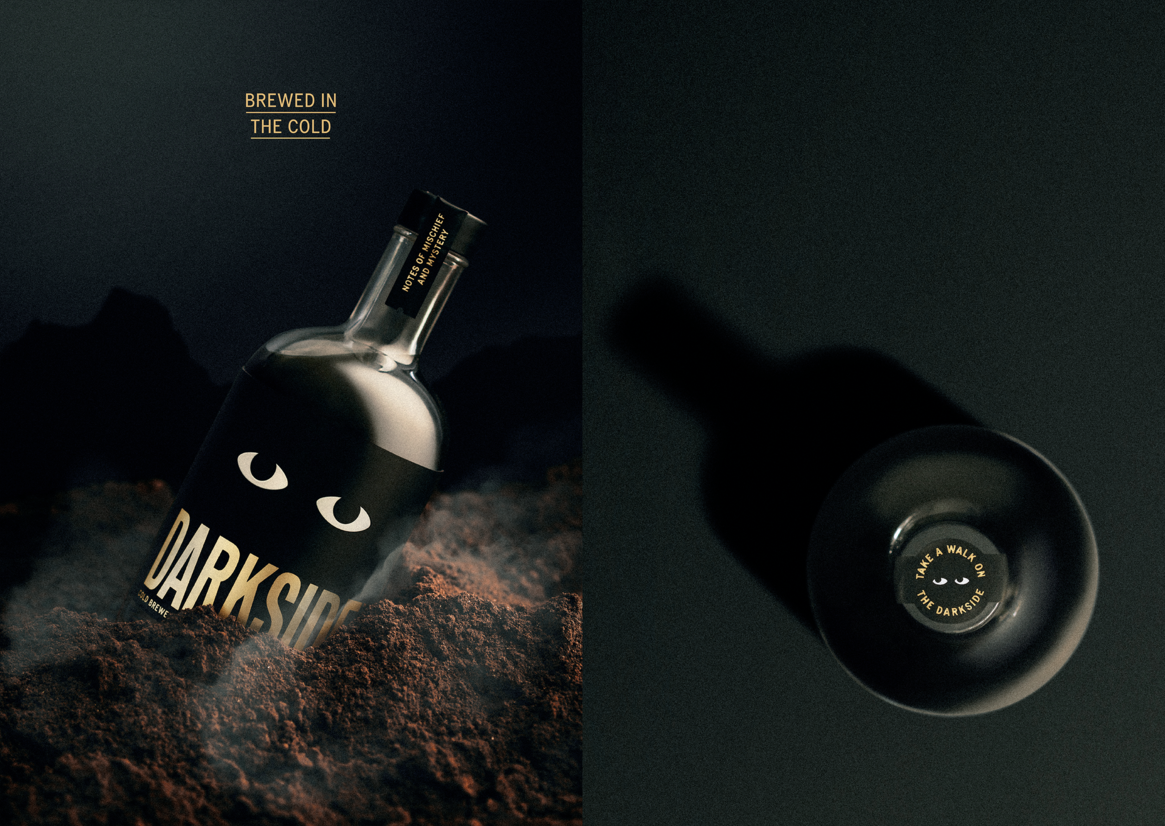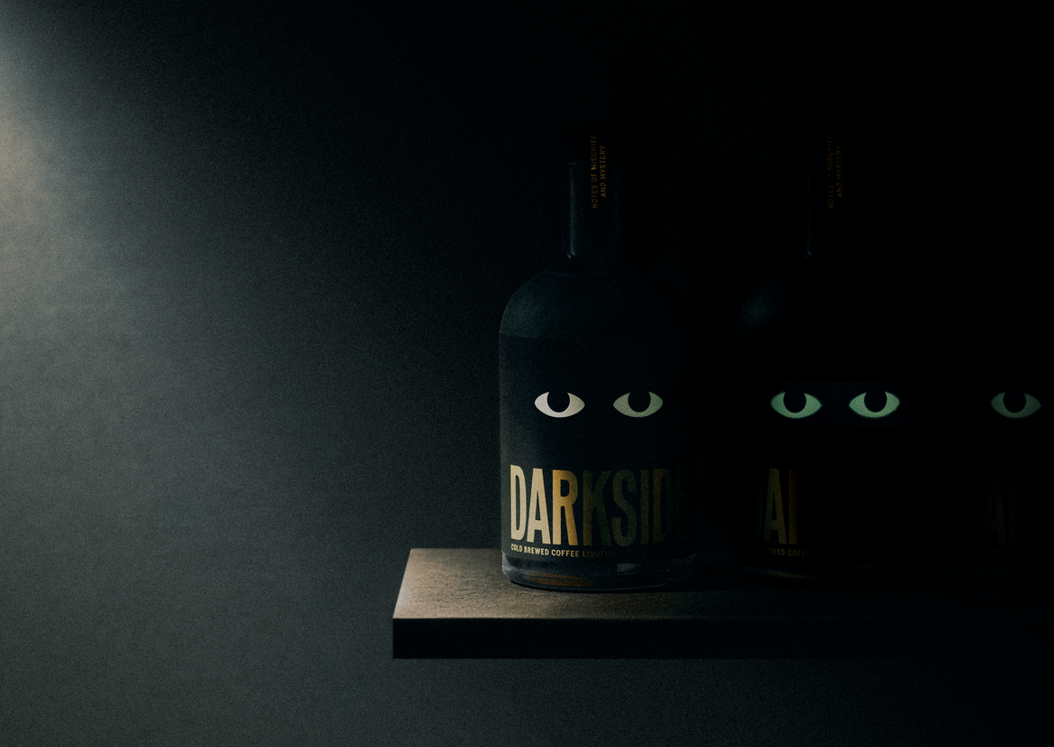 Our design exploration took a sharp turn to the dark side when tasked with bringing new energy and a more playful attitude to spirits via Darkside coffee liqueur.