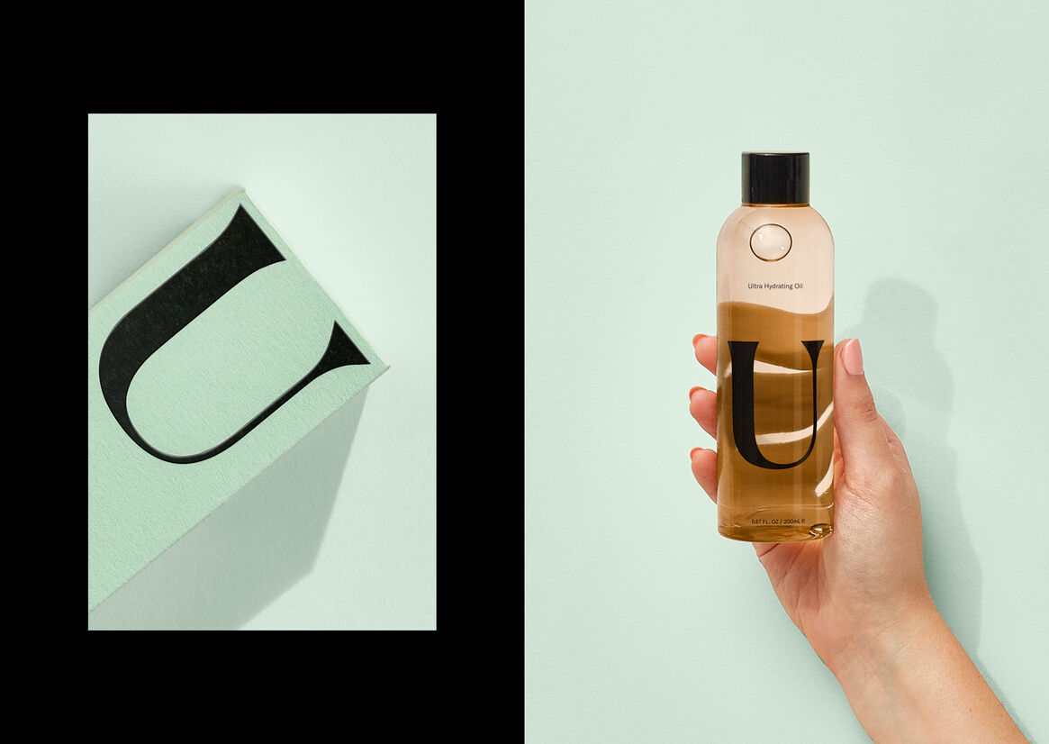 This is free from judgement and nasty chemicals, so we took a refreshing and transparent approach to the bottle design. Exterior packaging puts the uniqueness of ‘U’ front and centre with elegant simplicity, while structural cues from a periodic table add a sense of clinical elegance. Clean, pure and powerful.