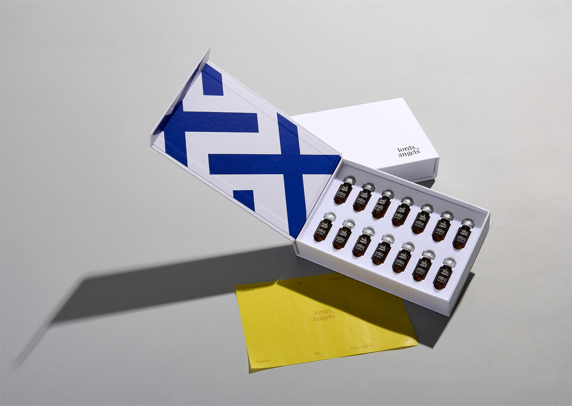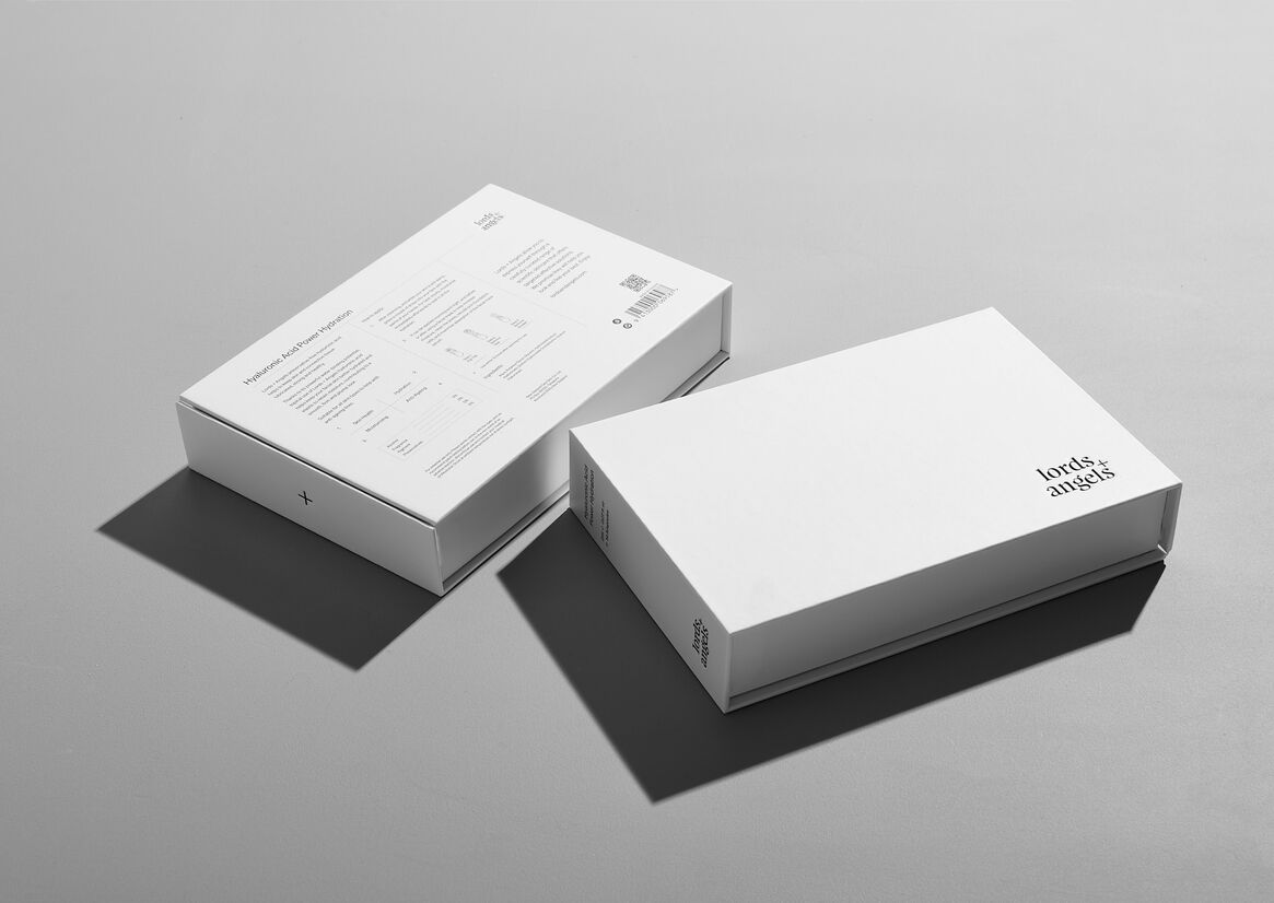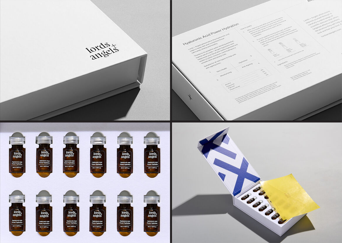Sleek clinical white packaging and narrative convey Lords + Angels focus on science-backed ingredients and function, with a premium look and feel.