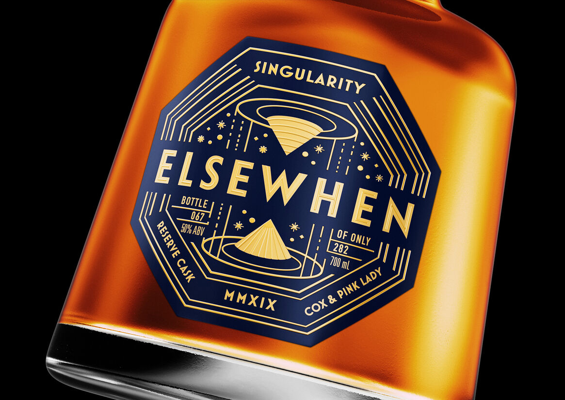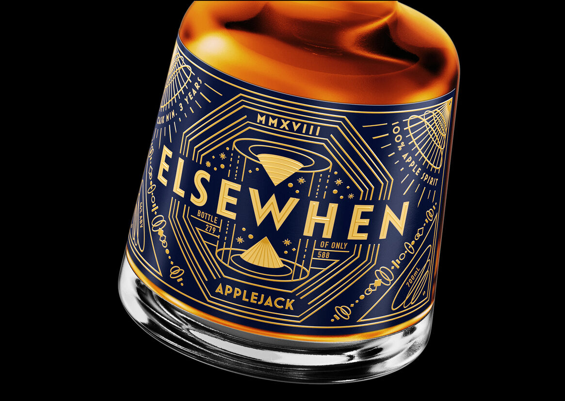 With a brief codenamed “Cocktails To Mars'’; themes of time travel; wormholes, mythical space “alconauts”, and apples first cultivated in 1830… Elsewhen Apple Jack brandy was always destined to have an eclectic brand identity. Our design thinking had to incorporate these fresh and playful ideas, yet retain a premium feel in keeping with the limited edition product.