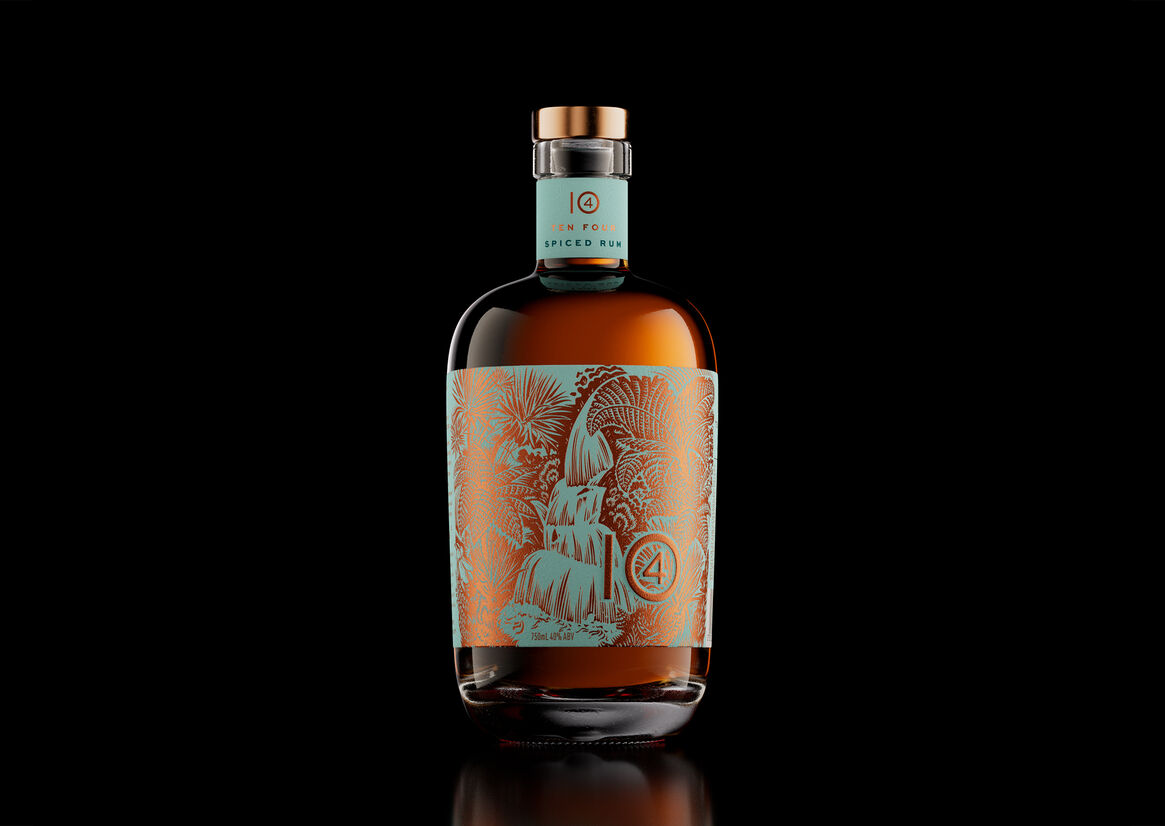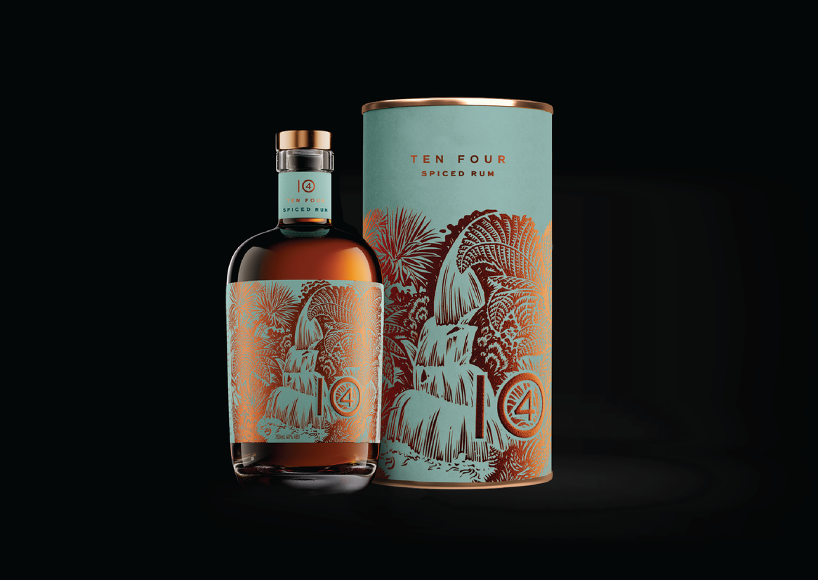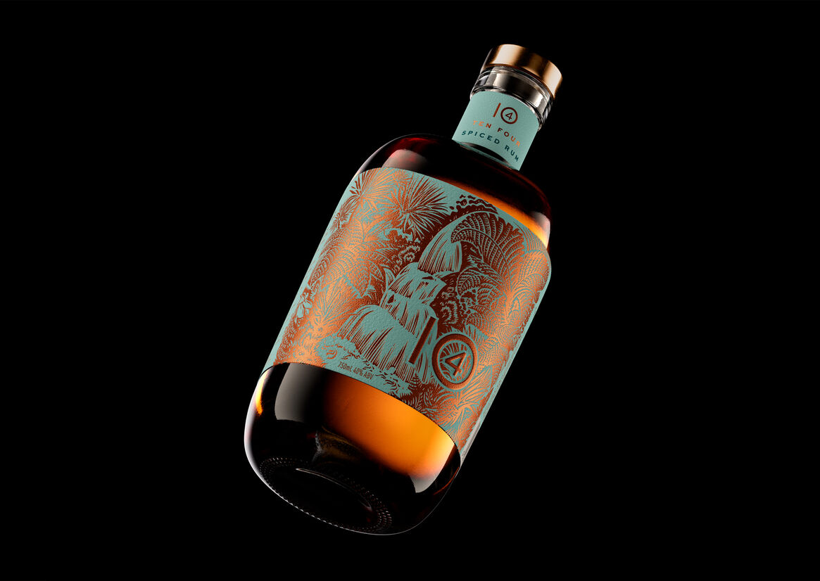 Going back to basics, the lush native bush inspired illustration is hand drawn on scrapper board, printed on uncoated stock with copper foil. This use of fine line details and hits of colour helps Ten Four inject a fresh and unexpected look into the rum category, and clearly distinguishes it from any other New Zealand spirit. The turquoise colour scheme references classic Kiwi baches; reminiscent of life’s simple pleasures and the nostalgic places we love to escape to, while the copper foil foliage brings a dense richness and smooth finish much like the product itself.