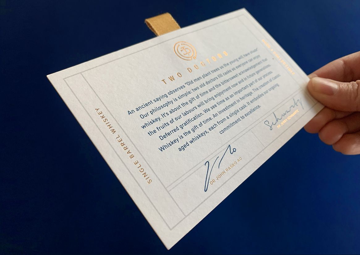 When John and Jerry, a pair of renowned Sydney doctors, teamed up to create a world-class single-barrel whiskey, they approached it with a surgical amount of care and detail. From the meticulously crafted product to the painstaking attention shown to every step of the process, their vision was for a contemporary whiskey of refined eccentricity.