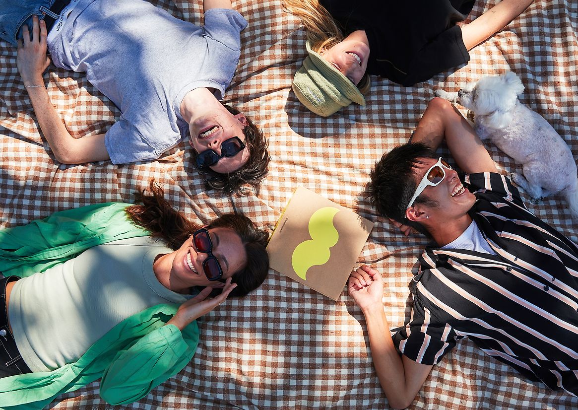 The new brand's reinforced symbolism, boldly using the hero brand marks, pop yellow, and playful messaging, were key in creating fresh and striking packaging. Screen-printed and edge-coloured cookie flat lay boxes, cookie bags and milkshake cups all share this iconic simplicity. A unique and cost-effective approach for packaging the cookies was reappropriating pizza boxes. Here the natural kraft substrate contrasts with the pop yellow for a bold and vibrant container. Each piece underwent meticulous design, prototyping, and critique involving international suppliers. Developing the methodology and standards for achieving the yellow hue on the box board was a carefully navigated process to ensure consistency across the brand. Additionally, the finishes and materials, including matte stocks with gloss finishes, complemented the final outcomes.