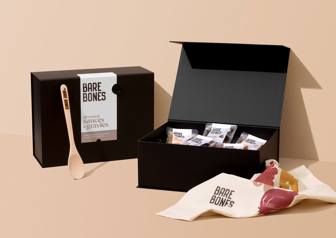 Our design idea was ‘Flavours Laid Bare’. The name Bare Bones, which combined the product format with the proposition, was immediately favoured. The design language was articulated through a stripped back approach that felt natural, frank and authentic, which was fresh for a category crowded by shouty, over-visualised brands.