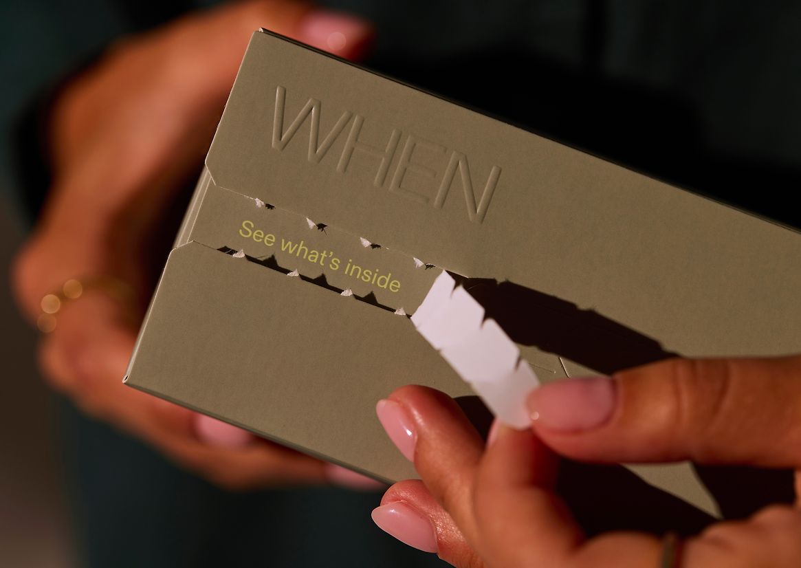 Colours and textures were chosen to evoke warmth and approachability, countering the industry's cold, clinical norms. The embossed organic cell shape and bold wordmark enhance brand recognition amidst visually busy retail settings. Inside, a custom instruction booklet employs technical illustrations for clarity, reinforcing WHEN's commitment to user understanding and engagement.