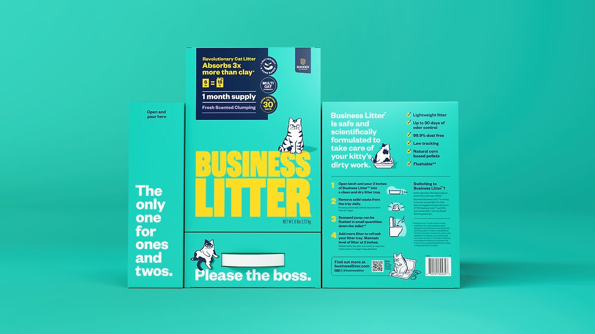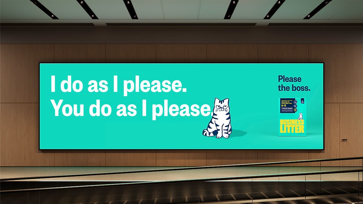 Business Litter also sought to make the cat litter experience—dare we say it—enjoyable. Using humour, the brand cuts through the BS and connects with the emotional truth of cat parenthood— they’re the boss, and they know we know it. While other brands boast about absorbency and longevity and try to sell the idea of control, Business Litter acknowledges that it’s our cats who really are in charge and this idea is conveyed via the ‘Please the boss’ tagline. Business Litter’s signature illustrated ‘boss’ cats and playful, frank brand voice reflects our cats' superior attitudes (they were worshipped in Egypt after all, and they’ll never let us forget it). The attention-grabbing colour palette uses contrasting hues and big typography to catch the eye of cat parents. This simple design approach allows the witty copy and the brand’s tongue-in-cheek tone to shine, fostering a deeper emotional connection with the audience and imbuing it with a sense of relatability and camaraderie that transcends mere product consumption.