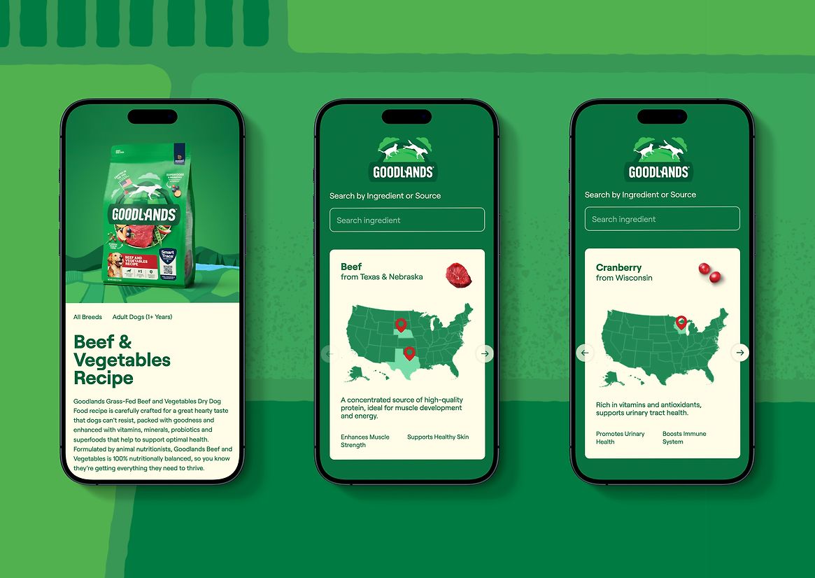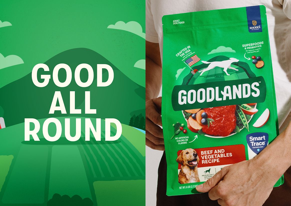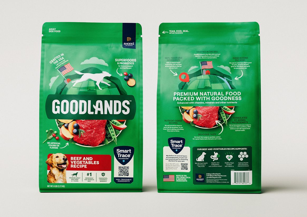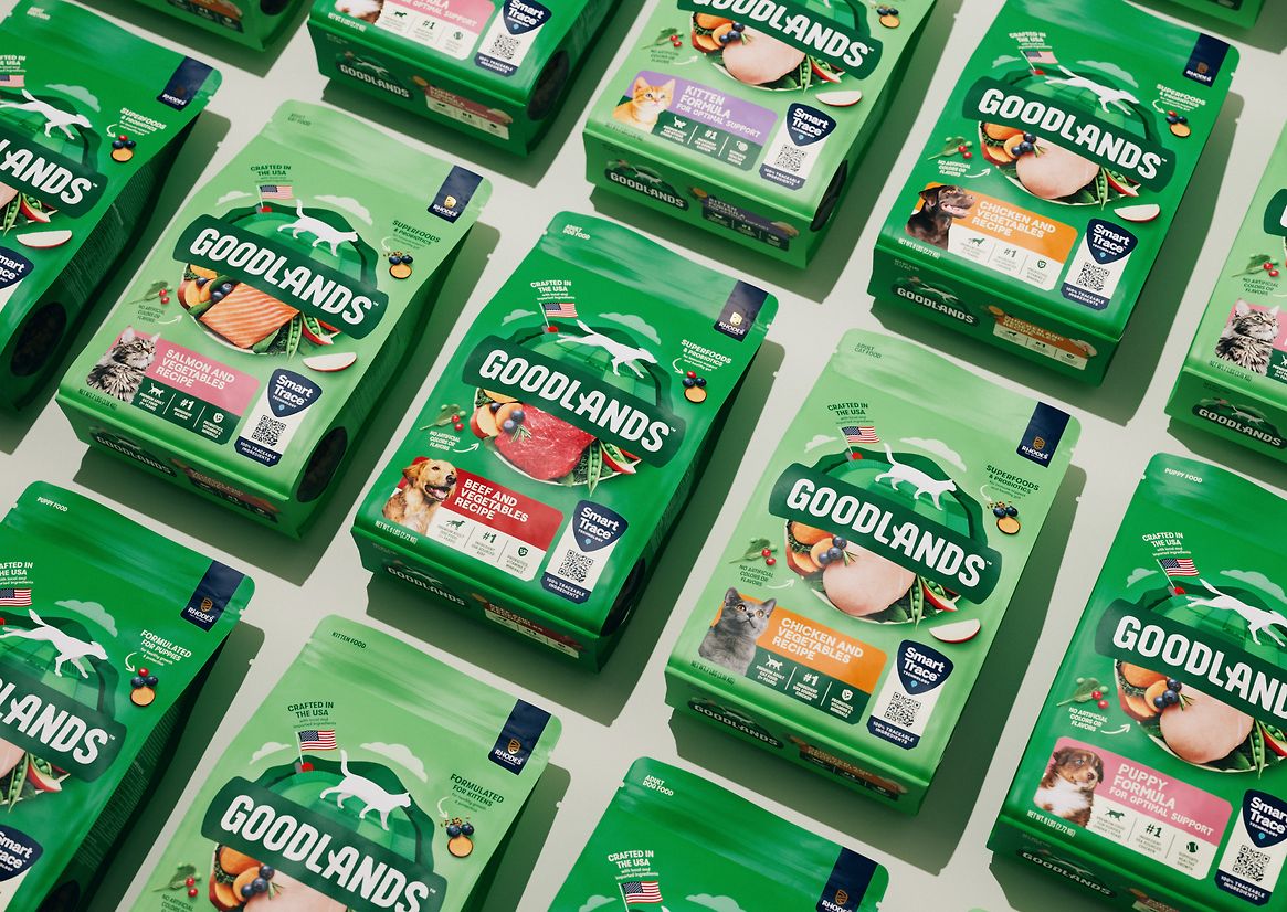 Goodlands addresses gaps in the pet food market by offering a brand that benefits pets, pockets, and the planet. Available exclusively at Walmart stores across the US, it sets a new standard with meat-first recipes developed by animal nutritionists that are crafted locally in the USA using sustainably sourced ingredients, no artificial additives, and complete ingredient traceability and batch testing transparency using industry-leading Smart Trace™ technology—all at an affordable price.