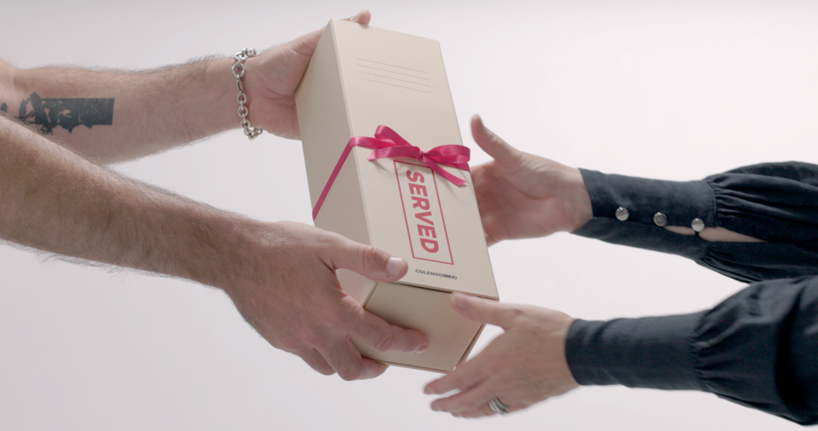 The box was tied together with a pink ribbon, as legal documents have been for hundreds of years. The label was even stamped with our own Colenso High Court coat of arms that included nods to our agency’s culture, such as takeaway coffee cups and award trophies.