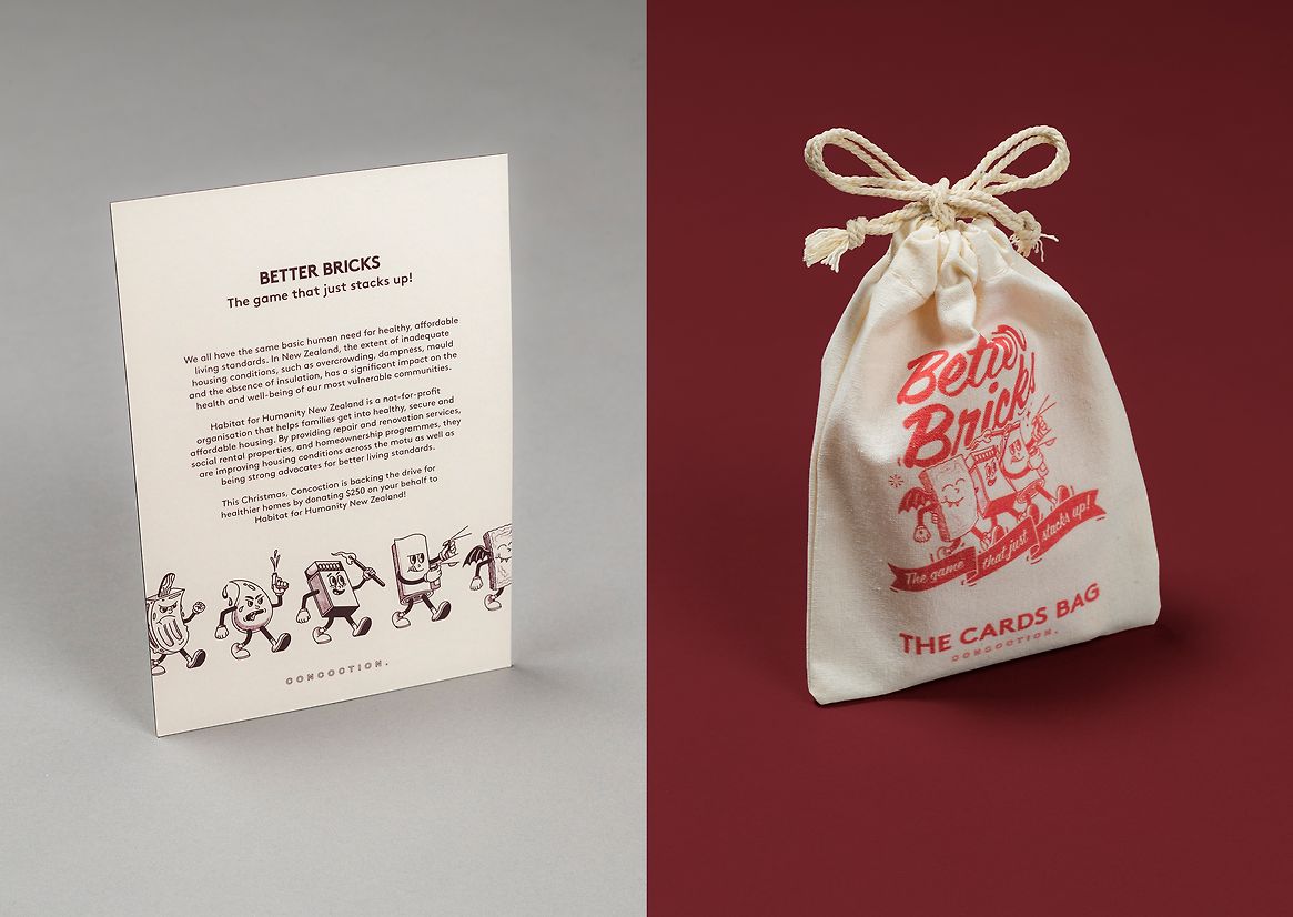 Our strategy was compelling because it combined charitable giving with an engaging, tangible item that clients and their families could enjoy. This approach reinforced the charitable message while providing a memorable and enjoyable experience. The card game served as a physical reminder of the donation, fostering a deeper connection to the cause. By integrating the themes of building and community into the game, we created a strong idea that resonated with the charity's mission, making the project both impactful and meaningful.