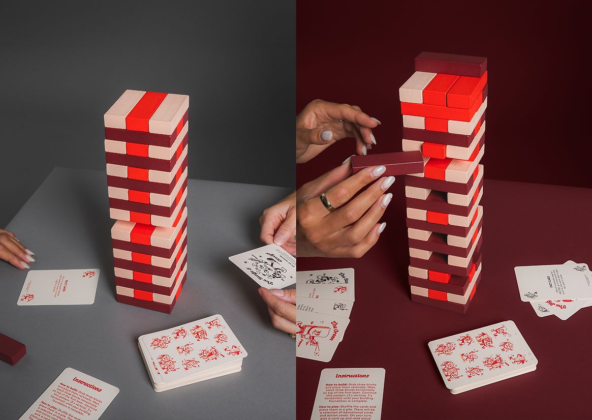 To enhance the gameplay of Jenga, we created a suite of cards that made the game more fun and educational. These cards provided additional challenges and information, teaching players about the charity's work and the importance of secure housing. Each card was crafted to a high technical standard, ensuring durability and ease of use during gameplay.