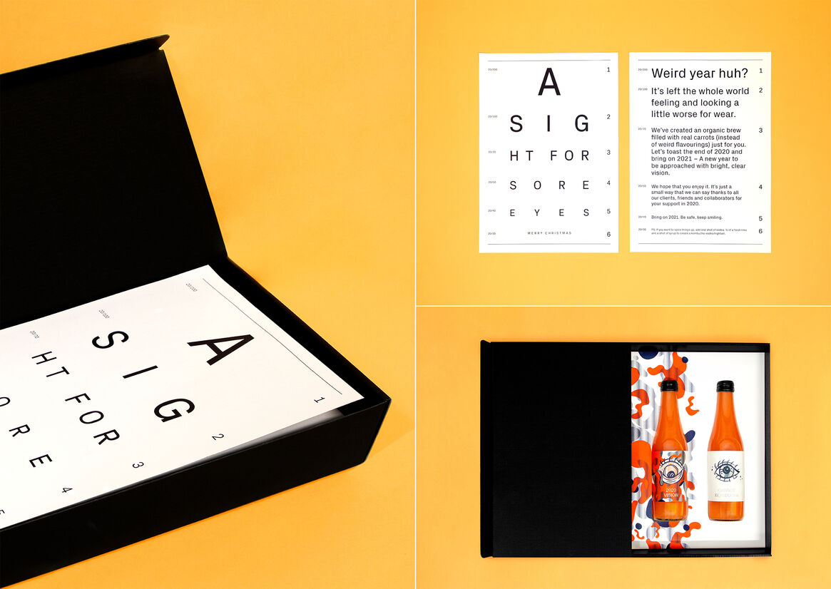 Until now! Yes, Karma may have kind of copied us, but we had the idea first. It’s a carrot Kombucha to help you see in the dark. And by dark, we mean the dark times of lockdowns, Netflix and too much time with your family. The label is kinda ugly, but that’s the point. So was 2020.