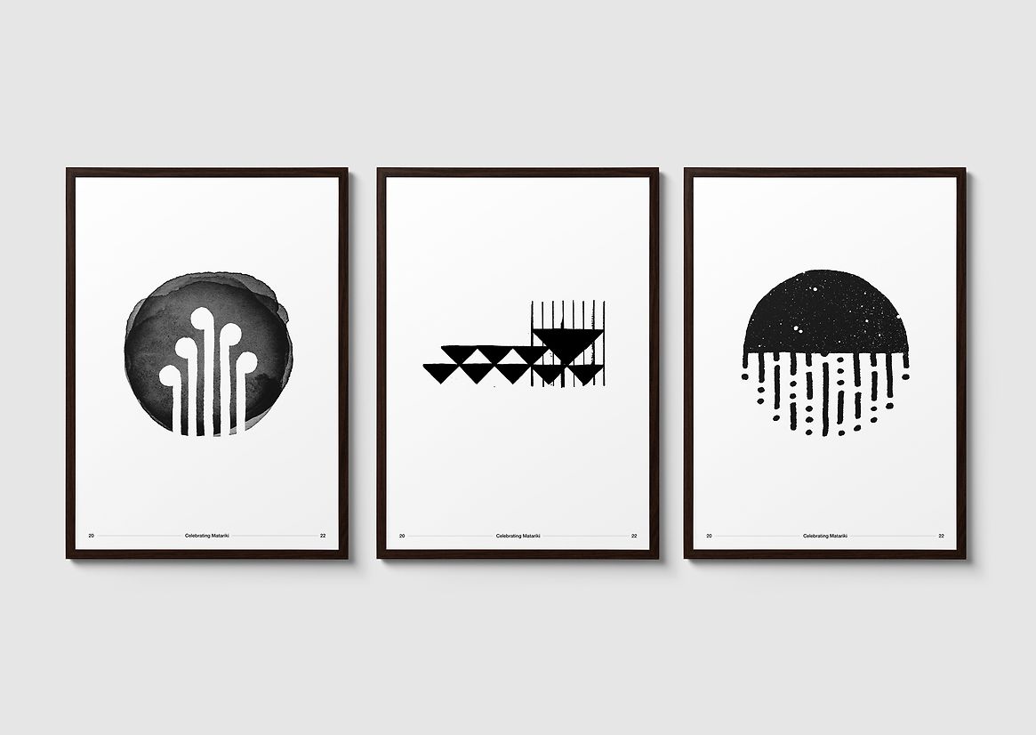 The black and white video has a distinct working style, with the conversation and mark-making the focus. Simple intro and title cards add to a documentary feel. Over 3 hour of conversation are edited down to music-video length capturing the essence of the korero (discussion). The designer then took the discussion’s key learnings, visual ideas and symbolism to create three te ao graphics.