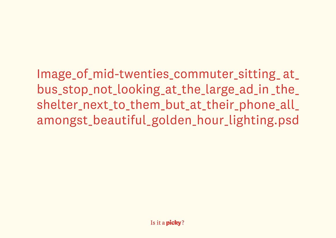 Alongside “Stock” images, Picky creates and photographs “Mocks” – layered, smart object embedded images to showcase design and campaigns in situ, locally. Creating both bespoke images for clients as well as ready-made Mocks available for everyone. All of which are perfect for…a Best Awards entry.