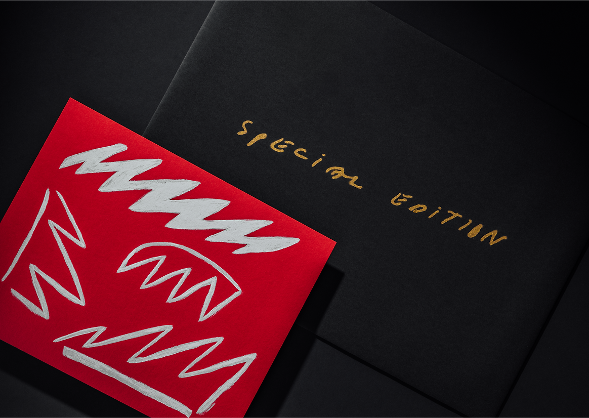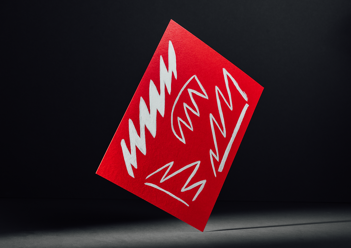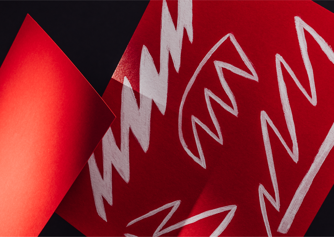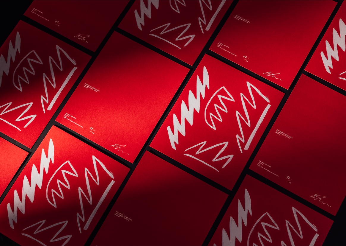PU worked with Logick Printing to craft and produce the invitation. The goal was to emulate the texture of the white and red paint strokes so that the print lived up to the real thing (to carry through the value of the artwork into the print format).