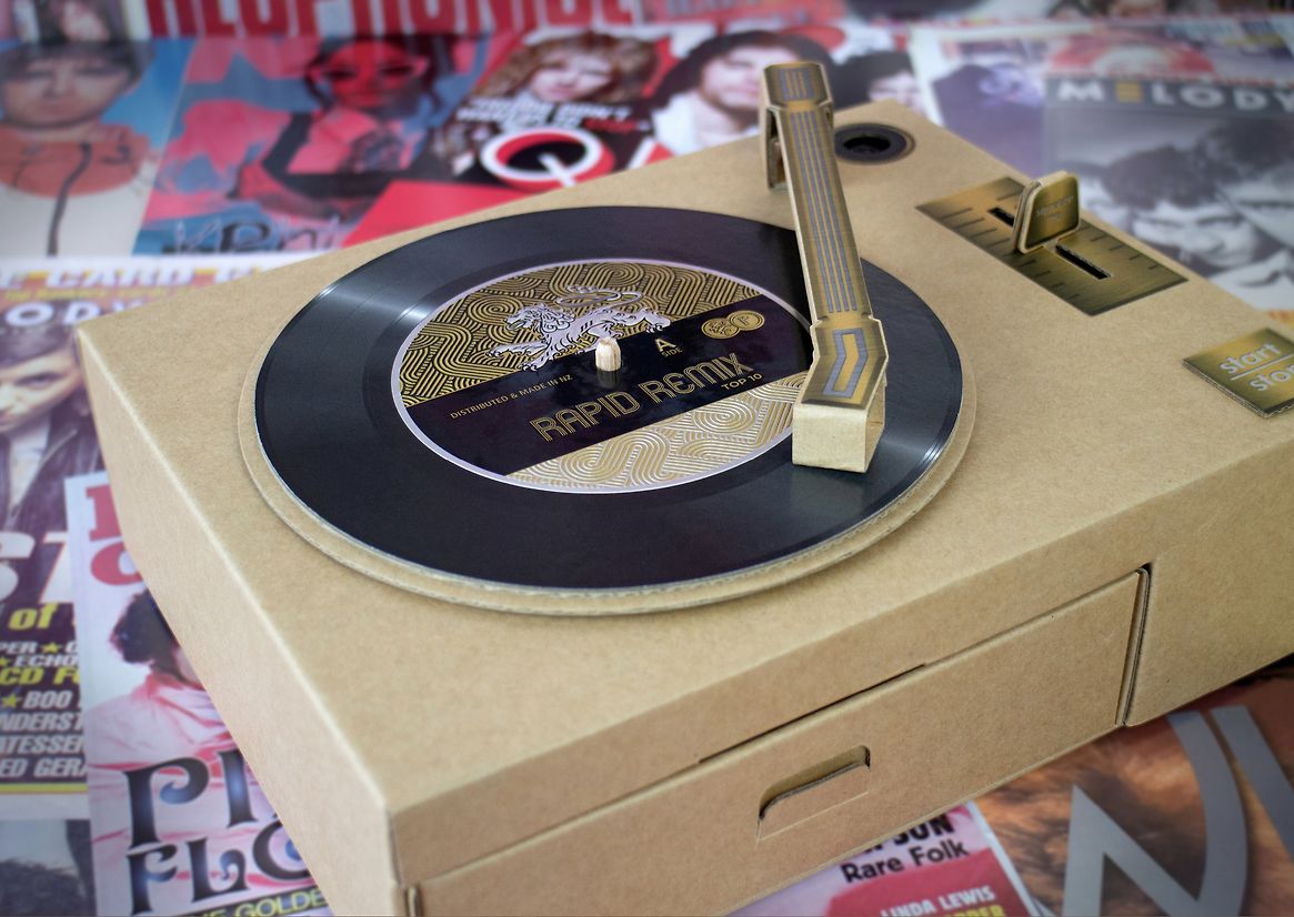 As a result of a long time in the making, the Rapid Remix is a marketing piece that is a real talking point and the unique cardboard record player was designed by one of, if not the best box designer in the country.