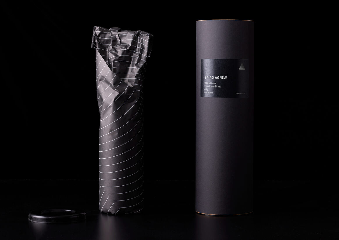 A simple mechanism, the package is hand delivered and via a personalised letter the Bribe™ asks for a meeting in exchange for the wine. The unboxing is all part of the fun, a black cylinder containing a custom tissue wrapped bottle.