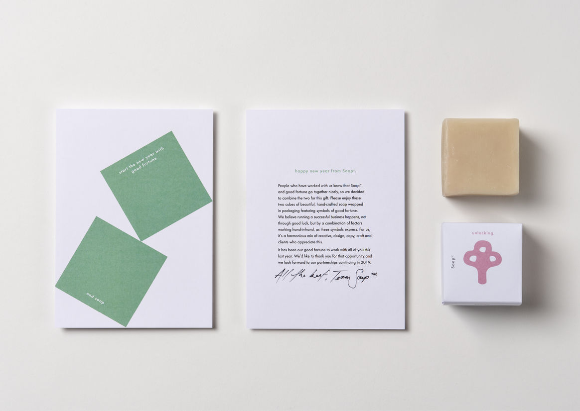 Graphic Business Communication Colour Award Graphics Design Communication Design Craft Editorial and Books Environmental Graphics Large Brand Identity Packaging Self Promotion Small Brand Identity Student & Academic Graphics Animation Digital Film Graphic Moving Image (archived 2025) Product Social Good Award Spatial Toitanga Value of Design Award User Experience Award (archived 2019) All categories Business Communication Colour Award Graphics Design Communication Design Craft Editorial and Books Environmental Graphics Large Brand Identity Packaging Self Promotion Small Brand Identity Student & Academic Graphics All years 2025 2024 2023 2022 2021 2020 2019 2018 2017 2016 2015 2014 2013 2012 2011 2010 Studio A-Z SOAP™ Design 3 Start the year with good fortune Finalist 2019 Self Promotion Credits Pou Auaha / Creative Director Katie Rebairo Ngā Kaimahi / Team Member Michael Bevin Kaitautoko / Contributor Glen Wood