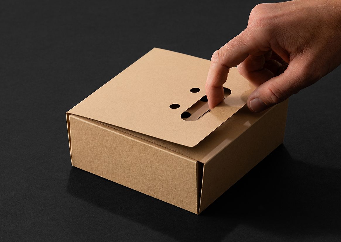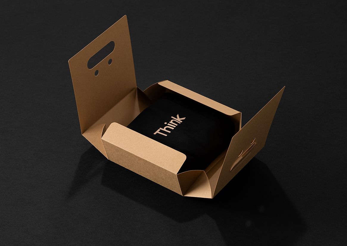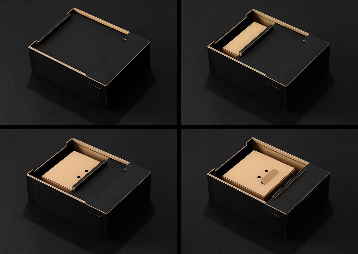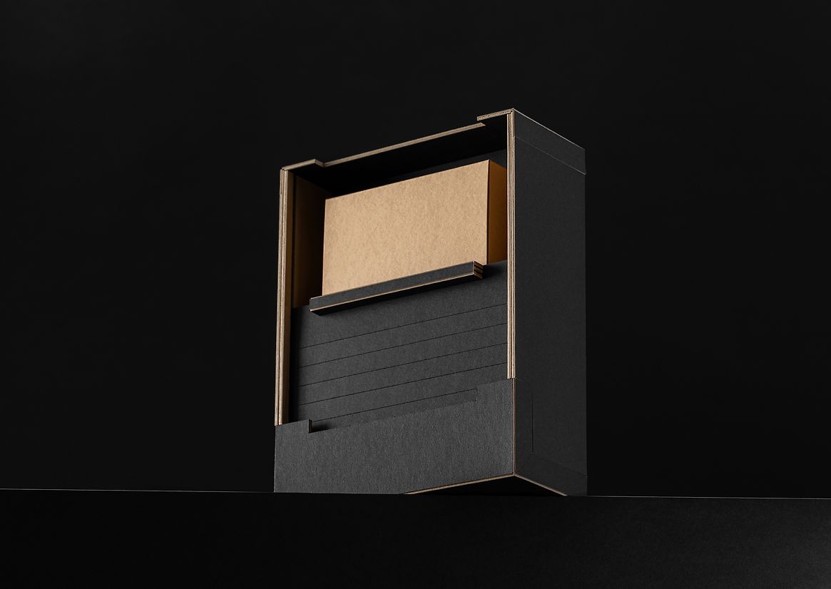 The idea was to package these in a bespoke box, showcasing our talents in structural packaging, and send these out to each other's clients as a limited edition, self-promotional gift. The challenge was to create a memorable unboxing experience. Rather than just receiving a T-Shirt in a courier bag, ripping it open and chucking it on, we wanted the recipient to take and savour the moment to get to the goods. The box is designed to show the cardboard's effortless natural beauty. There's purposely no print or branding on this box, just lovely raw, sharp edges, perfectly crafted and scored so the front panel glides open, mimicking the motion of screen printing. We incorporated a mischievous face into the box design to add a personal touch and reveal the sender's identity. The box could be sealed and interacted with by utilising a design feature in the mouth, popping open to reveal the tee inside.