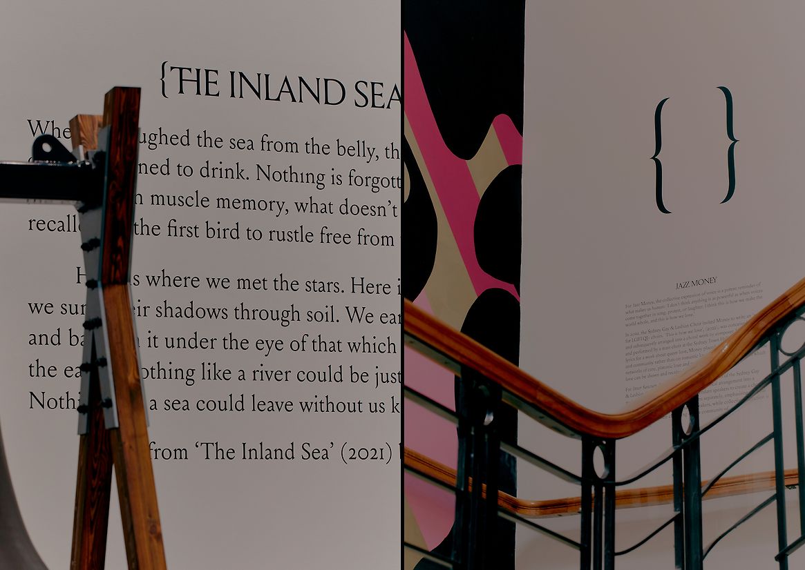 Completing the visual identity is a distinctive typographic expression featuring carefully crafted ligatures and glyphs that intertwine to create a unique rhythm and resonance, harmoniously merging the campaign with its linguistic elements. The connecting bracket, a key symbol for the show, represents the interplay between the inner and outer worlds that lie at the heart of José's curatorial vision. Strategically placed throughout the gallery, these serve as subtle indicators of where the Biennial artworks are interwoven with the permanent collection, creating a seamless and immersive experience for visitors.