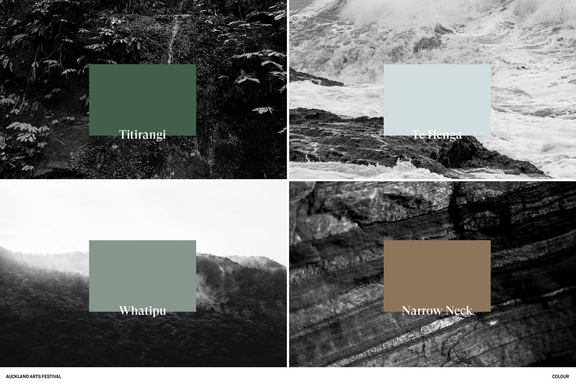 The intention of the work was to visually ground the festival in Aotearoa; specifically to ‘this land’, ‘this place’ and ‘these people’.