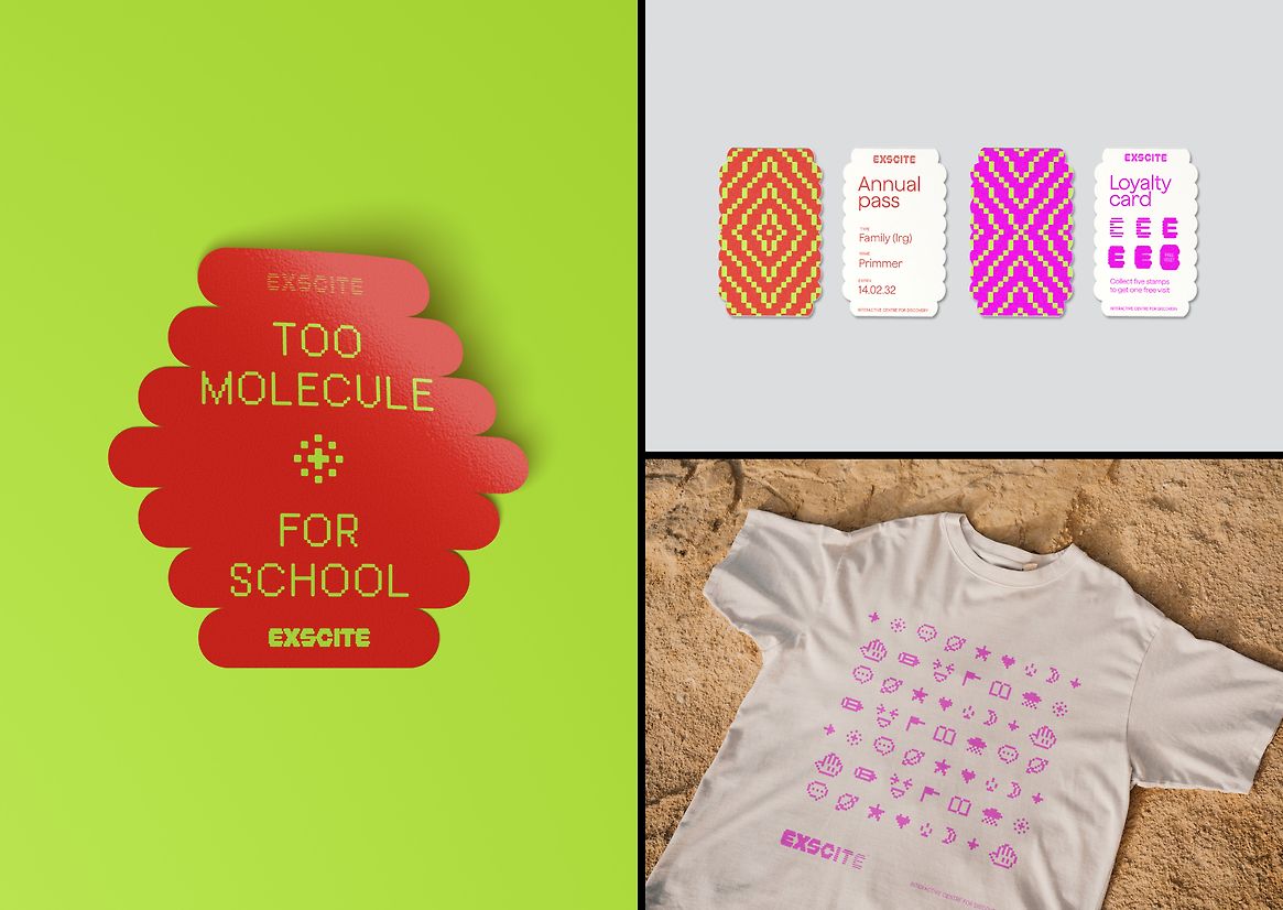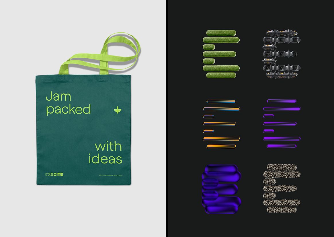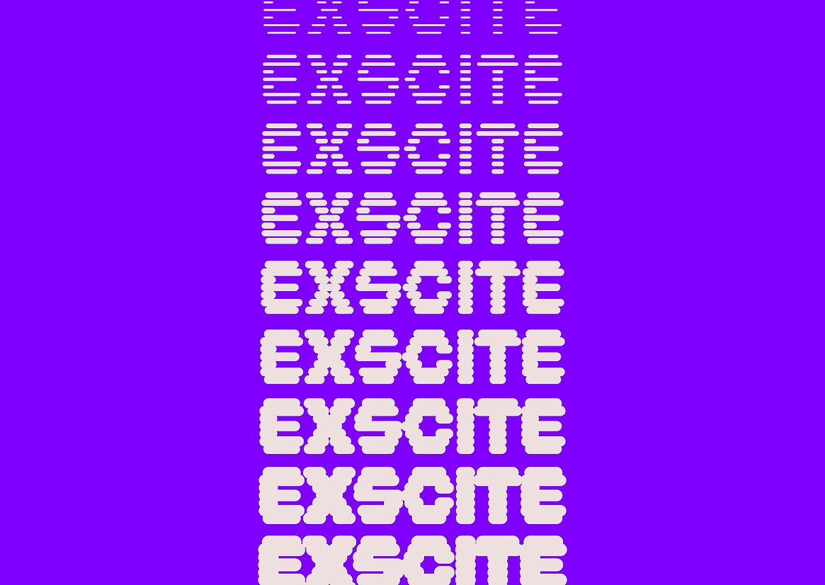 The Exscite wordmark is dynamic, experimental and playful. It leverages the breadth of Exscite’s exhibition space into a wordmark that can scale from laser thin to fully expanded. In its multiple and changing forms it demonstrates the ‘scale of the universe’ concept for the new space. The iconic nature of the ‘E’ lends itself to a monogram that is also used in a range of weights and further expanded into 3D rendered iterations, showcasing materials related to the current exhibit.