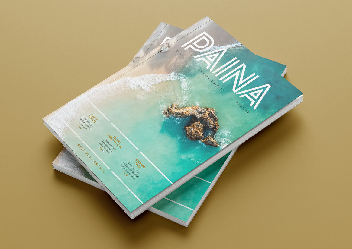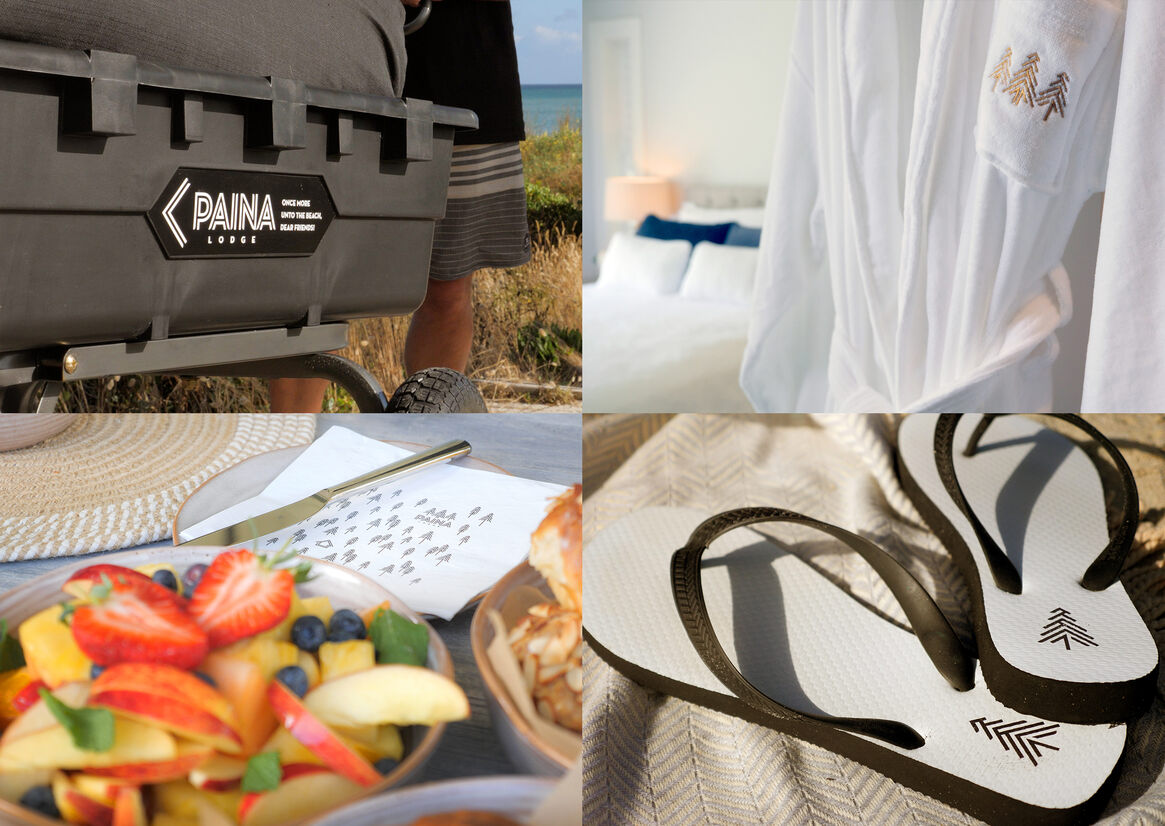 Using the architecture and interior design as key influences the team were able to develop a powerful word mark and visual language. With the visual identity in place a series of guest experience moments were developed. From the Paina summer edition magazine which celebrates local artists, restaurants and artisans to the thoughtful welcome pack and gifts laid out for guests upon arrival. From the cheeseboard, napkins and coasters to the specially commissioned Paina Lodge artwork - every aspect of the experience has been carefully considered.