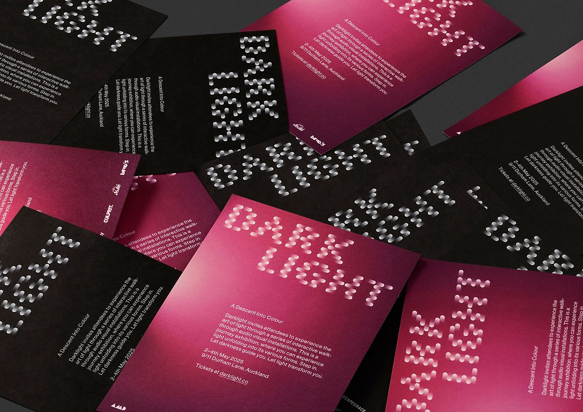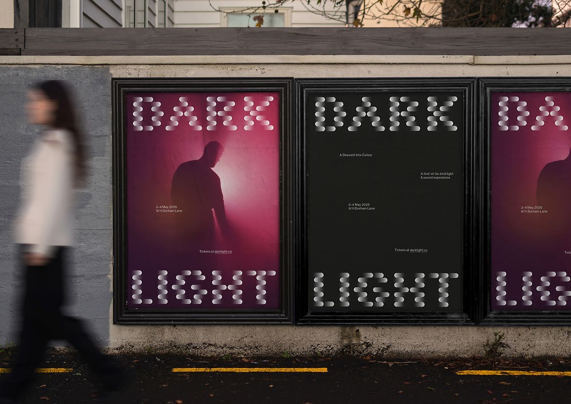 We were approached to create the identity for Darklight as well as the collateral for the first event; Darklight: A descent into Colour.