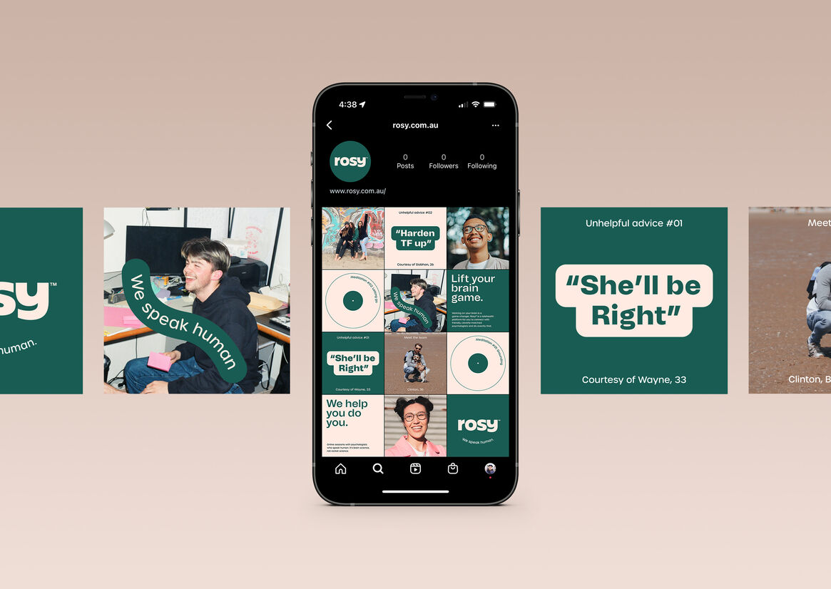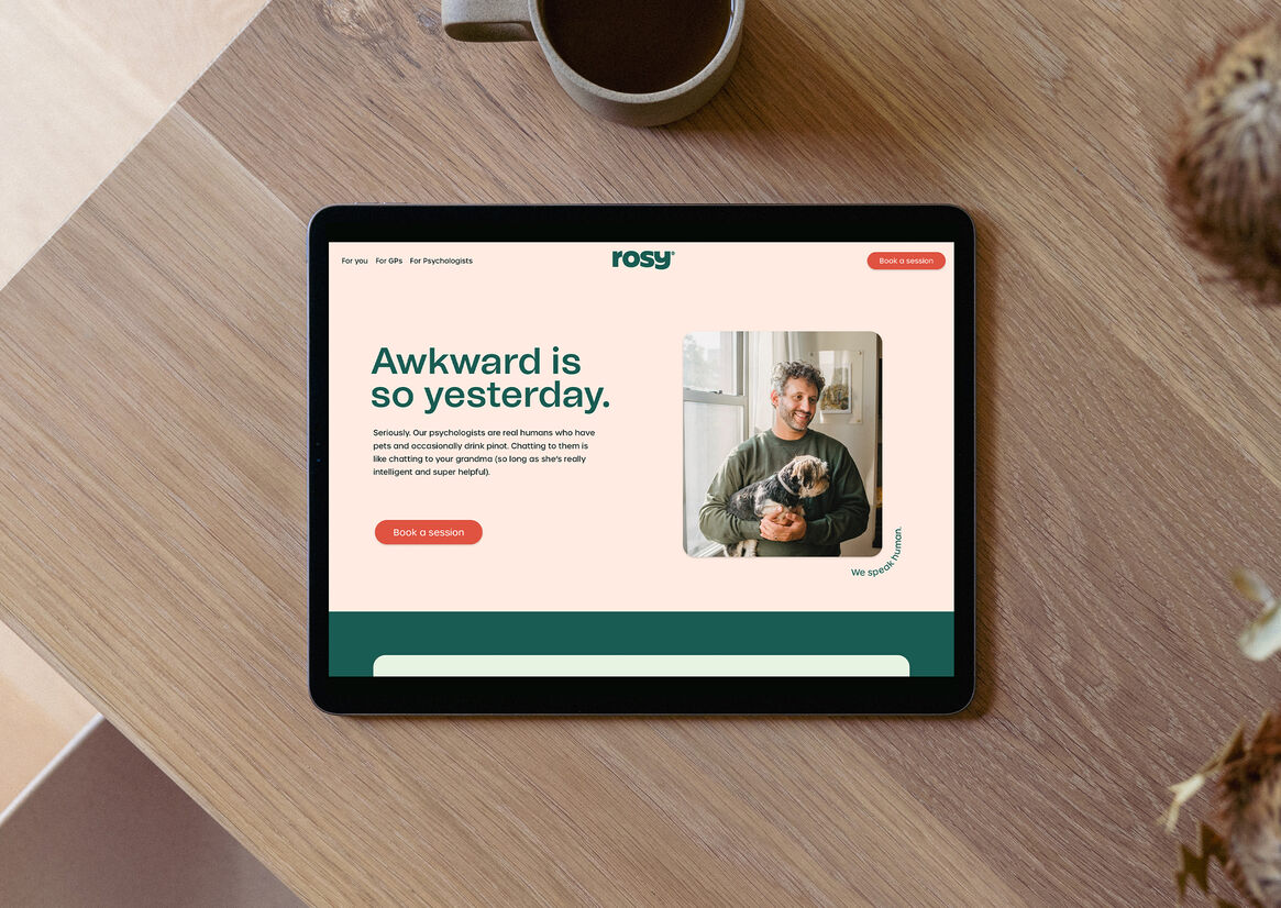 In a market full of “it’s okay to not be okay” messaging, Rosy needed to stand alone with a refreshingly frank lens on the issue - one that would normalise, intrigue and excite people about the fresh experience that awaits. The brand intentionally walks a fine line - approachability and friendliness took the front seats but we still had to fit a hint of professionalism in the back of the car too. A name suggestive of the outcome, a smiling wordmark, a bold tagline, down-to-earth copy throughout and a brave social campaign land Rosy away from the stereotypes of old worldly psychology practices and firmly in the era of tech-savvy startups with something genuinely good to offer the world.