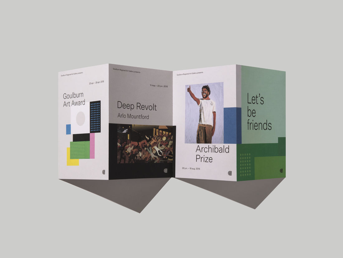 Graphic Business Communication Colour Award Graphics Design Communication Design Craft Editorial and Books Environmental Graphics Large Brand Identity Packaging Self Promotion Small Brand Identity Student & Academic Graphics Animation Digital Film Graphic Moving Image (archived 2025) Product Social Good Award Spatial Toitanga Value of Design Award User Experience Award (archived 2019) All categories Business Communication Colour Award Graphics Design Communication Design Craft Editorial and Books Environmental Graphics Large Brand Identity Packaging Self Promotion Small Brand Identity Student & Academic Graphics All years 2025 2024 2023 2022 2021 2020 2019 2018 2017 2016 2015 2014 2013 2012 2011 2010 Studio A-Z Garbett 26 Goulburn Regional Art Gallery Identity 2018 Small Brand Identity Credits Pou Auaha / Creative Director Paul Garbett Ngā Kaimahi / Team Members Paul Garbett, Danielle de Andrade Client Goulburn Regional Art gallery Judge's comments: Simple idea and system that tells a cohesive story not only about the Art Gallery but also the region.