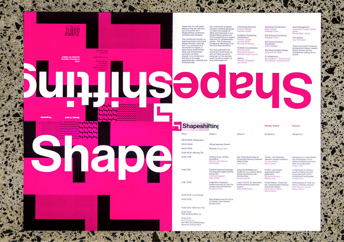 Graphic Business Communication Colour Award Graphics Design Communication Design Craft Editorial and Books Environmental Graphics Large Brand Identity Packaging Self Promotion Small Brand Identity Student & Academic Graphics Animation Digital Film Graphic Moving Image (archived 2025) Product Social Good Award Spatial Toitanga Value of Design Award User Experience Award (archived 2019) All categories Business Communication Colour Award Graphics Design Communication Design Craft Editorial and Books Environmental Graphics Large Brand Identity Packaging Self Promotion Small Brand Identity Student & Academic Graphics All years 2025 2024 2023 2022 2021 2020 2019 2018 2017 2016 2015 2014 2013 2012 2011 2010 Studio A-Z Gerbrand van Melle Shapeshifting Finalist 2014 Small Brand Identity Credits Pou Auaha / Creative Director Gerbrand van Melle Client AUT University