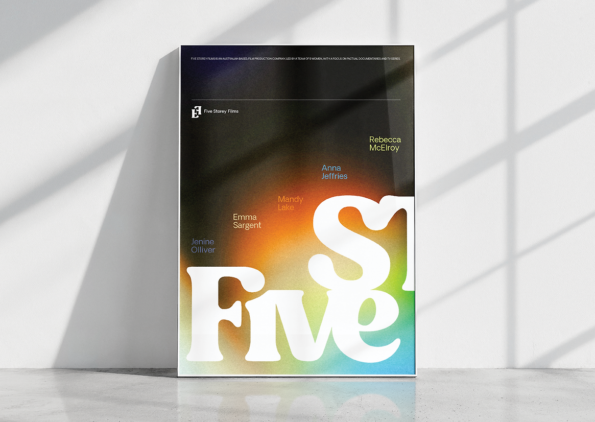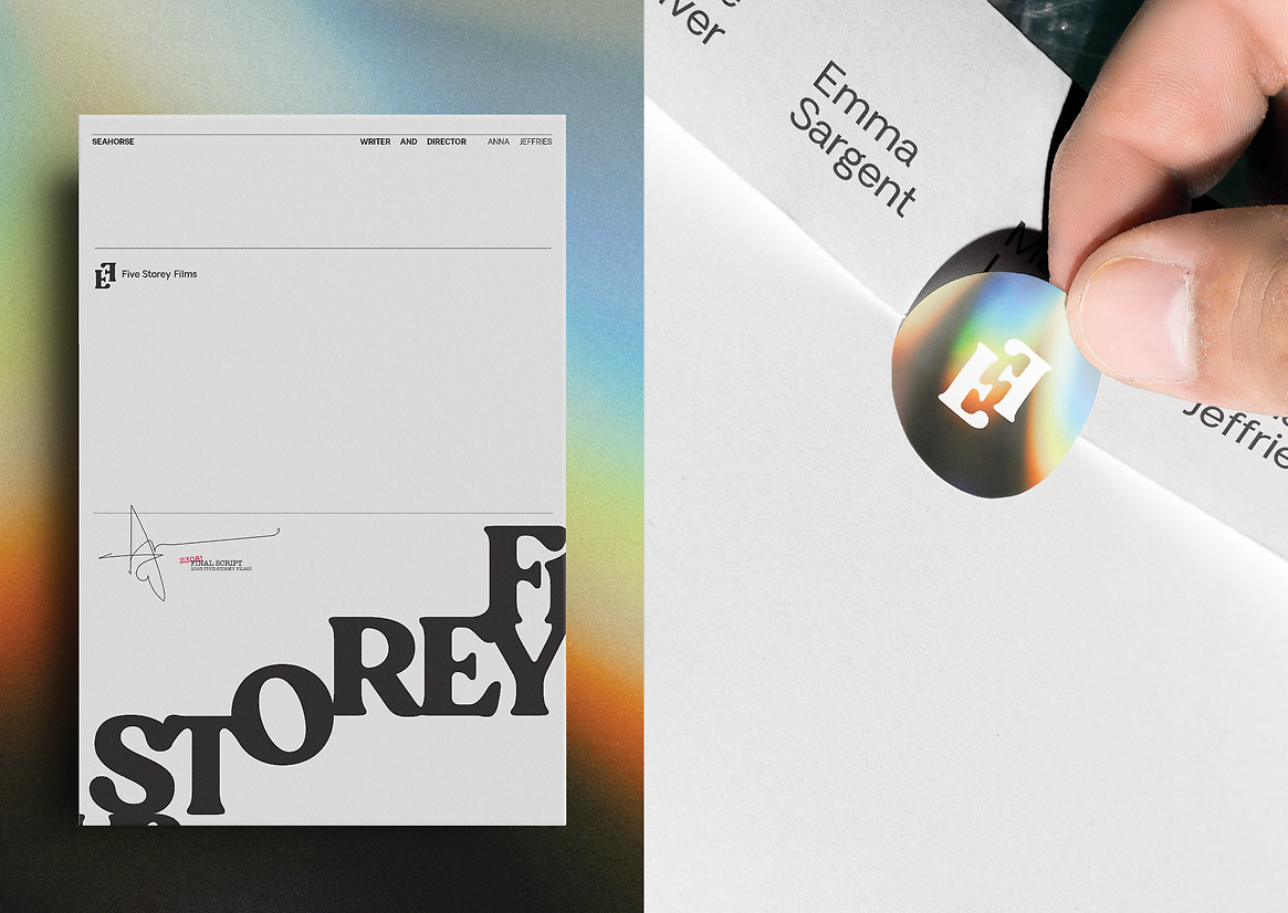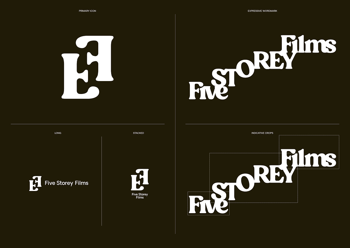 Five Storey Films is a women-led production company built on the belief that storytelling is most powerful when it is layered, collaborative, and deeply human. The brand’s identity reflects this ethos, rooted in structure, connection, and shared creativity. From applying for Government grants to onscreen applications, the wordmark references the five founders and their connected approach to filmmaking. Letterforms merge into one another, symbolising collaboration, while the shortened logo uses the “F”s in Five and Films to form the “S” in Storey at the heart of the brand - creating depth, projection and a strong visual signature that tells its own story. Designed to balance institutional clarity with creative depth, the identity had to perform across a range of touchpoints, from on-screen to detailed documents, film posters to treatment decks. It needed to carry the weight of professionalism in government-facing spaces while maintaining the creative spirit of the filmmaking team. The stacked nature of the wordmark allows for dynamic use across layouts through cropping, and motion, creating ownable brand moments that can stretch across formats without losing clarity, while highlighting Five, Storey, and Films.