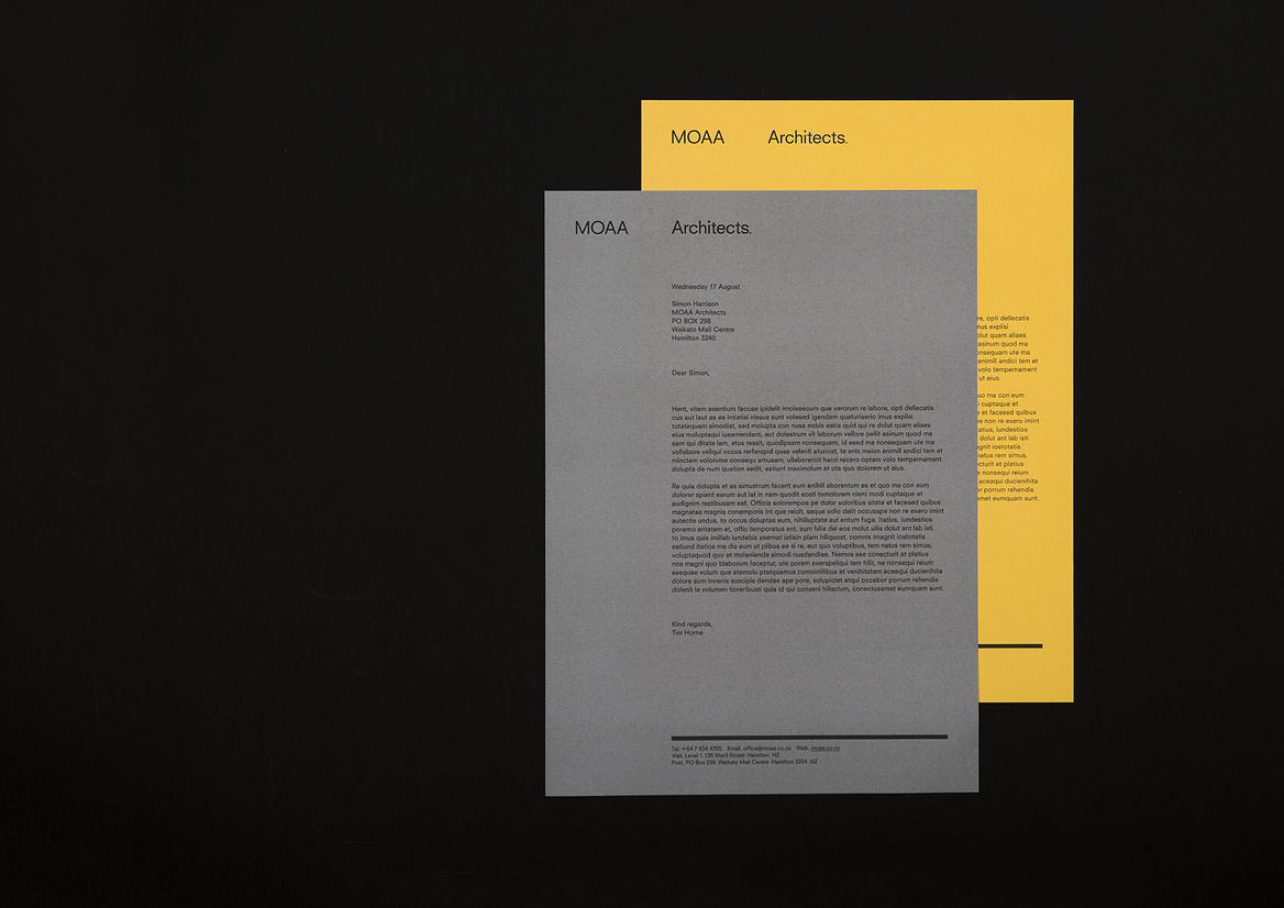 Graphic Business Communication Colour Award Graphics Design Communication Design Craft Editorial and Books Environmental Graphics Large Brand Identity Packaging Self Promotion Small Brand Identity Student & Academic Graphics Animation Digital Film Graphic Moving Image (archived 2025) Product Social Good Award Spatial Toitanga Value of Design Award User Experience Award (archived 2019) All categories Business Communication Colour Award Graphics Design Communication Design Craft Editorial and Books Environmental Graphics Large Brand Identity Packaging Self Promotion Small Brand Identity Student & Academic Graphics All years 2025 2024 2023 2022 2021 2020 2019 2018 2017 2016 2015 2014 2013 2012 2011 2010 Studio A-Z Inhouse 85 MOAA Architects 2017 Small Brand Identity Credits Pou Auaha / Creative Director Arch MacDonnell Ringatoi Matua / Design Director Toby Curnow Ngā Kaimahi / Team Members Hamish Haydon, Toby Curnow, Arch MacDonnell Client MOAA Architects