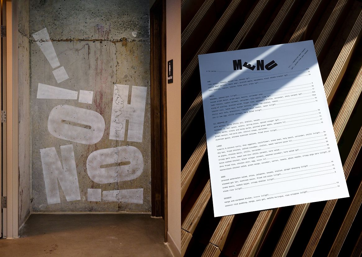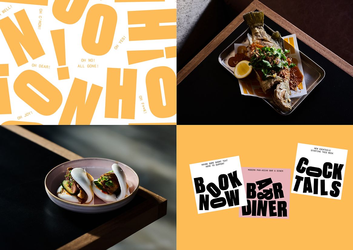 Clumsy letterforms and topsy-turvy layouts channelling the fun, mess and chaos of a night out for Southeast Asian bar and diner, OHNO!