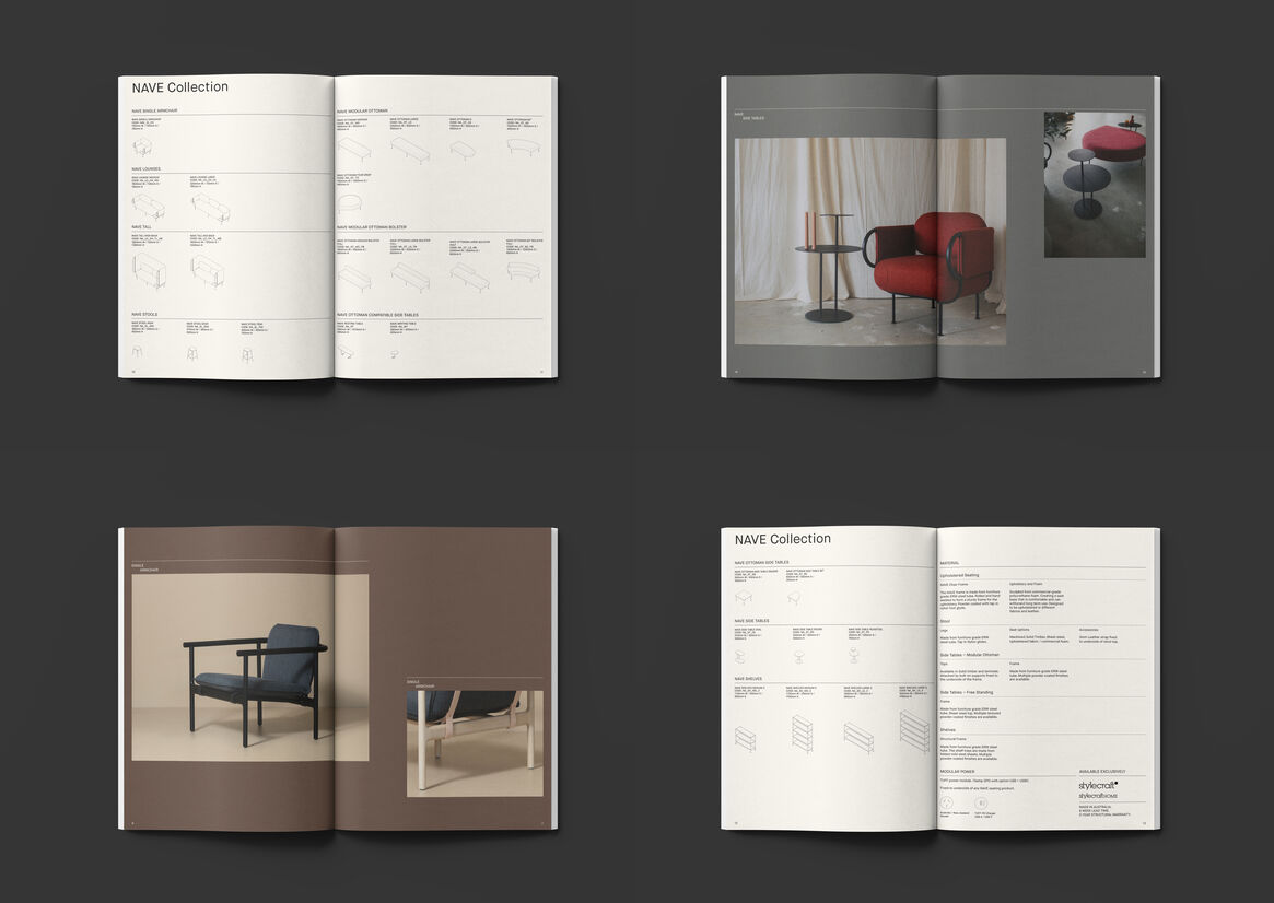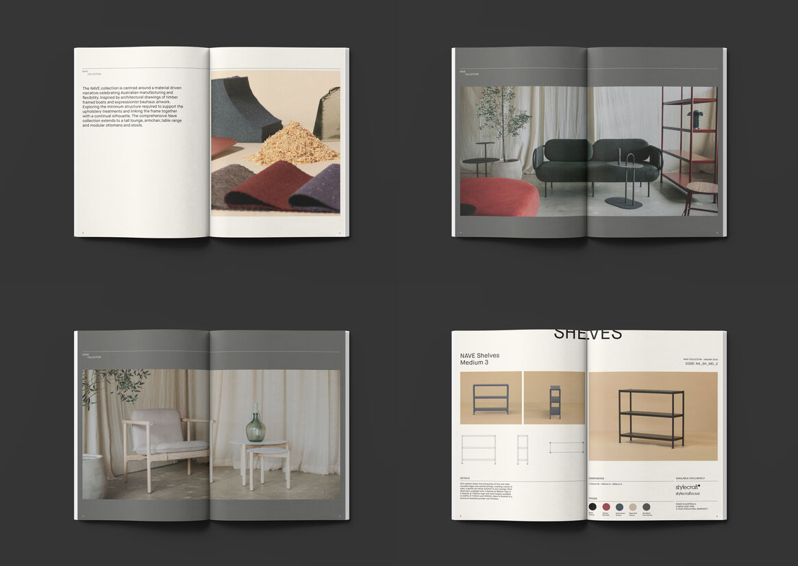 The brand identity was designed with a custom typographic solution, stripped back to raw, honest elements and inspired by the low, angular, refined furniture designs that have become synonymous with the designers’ aesthetic. Paired with new type, the art direction now features a dark, moody photographic approach which utilises natural light and stylised scenes, evidencing the products’ compatibility with high-end home magazines and showrooms.