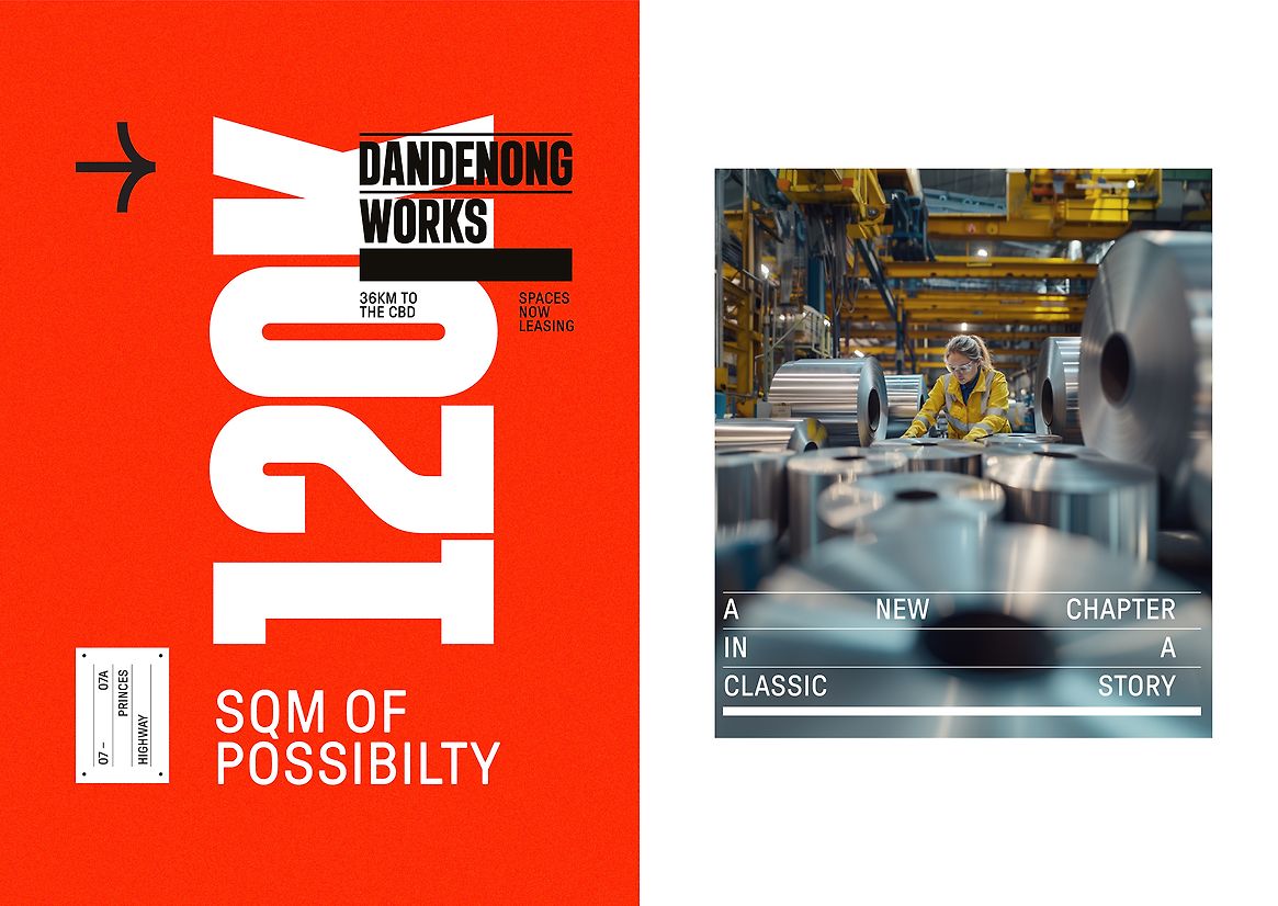 Dandenong Works is more than just a name or a logo. It’s a brand that restores pride and meaning to an industrial site that could easily have been overlooked. It signals to potential tenants that this is a place with real character, and to future employees that it’s somewhere they can be proud to work.