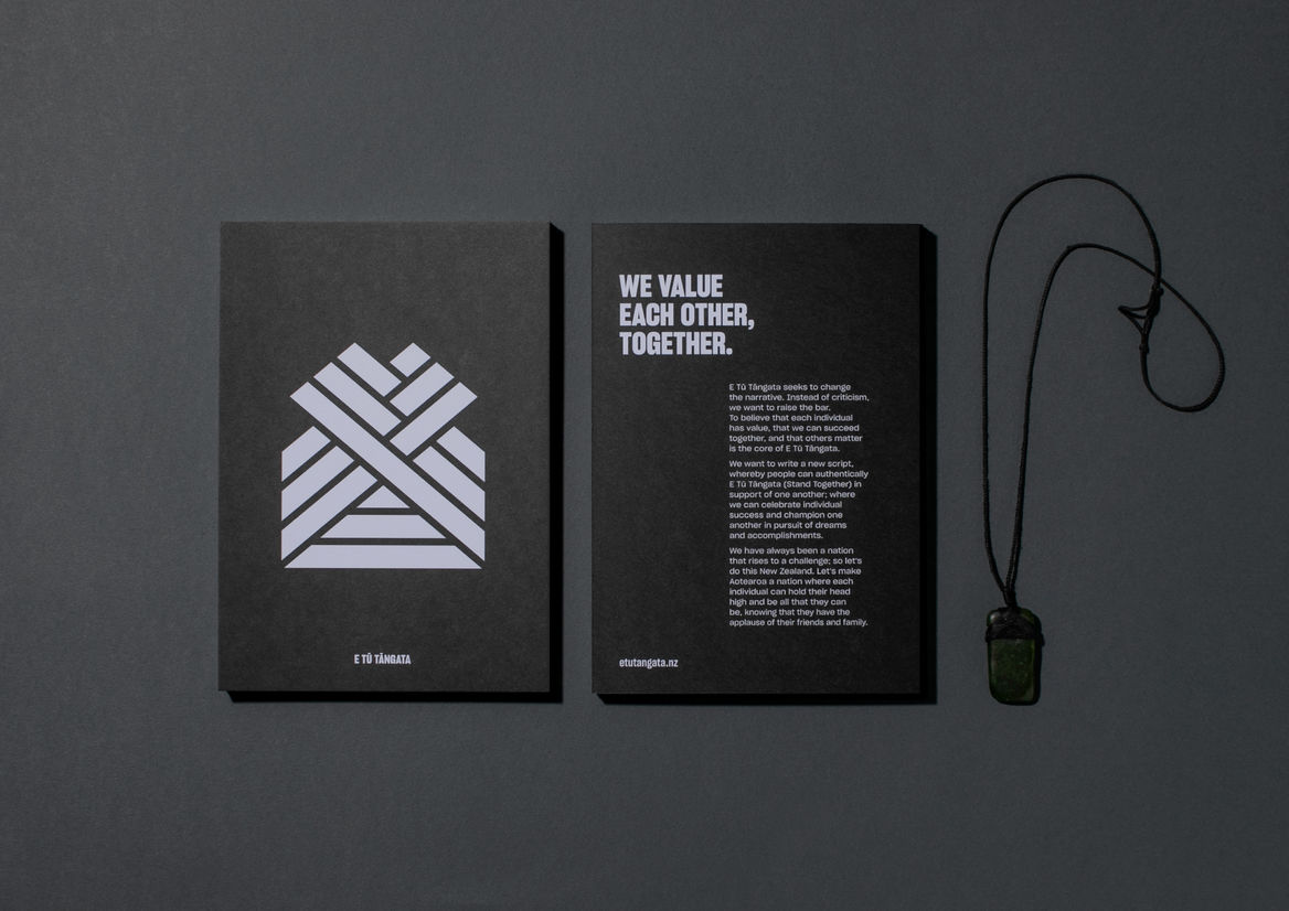Graphic Business Communication Colour Award Graphics Design Communication Design Craft Editorial and Books Environmental Graphics Large Brand Identity Packaging Self Promotion Small Brand Identity Student & Academic Graphics Animation Digital Film Graphic Moving Image (archived 2025) Product Social Good Award Spatial Toitanga Value of Design Award User Experience Award (archived 2019) All categories Business Communication Colour Award Graphics Design Communication Design Craft Editorial and Books Environmental Graphics Large Brand Identity Packaging Self Promotion Small Brand Identity Student & Academic Graphics All years 2025 2024 2023 2022 2021 2020 2019 2018 2017 2016 2015 2014 2013 2012 2011 2010 Studio A-Z Madeknown 15 E Tū Tāngata 2020 Small Brand Identity Credits Pou Auaha / Creative Directors Josh Thompson, Phillip Sunderland Ngā Kaimahi / Team Member Madeline Laffey Kaitautoko / Contributor Hillary K Client E Tū Tāngata