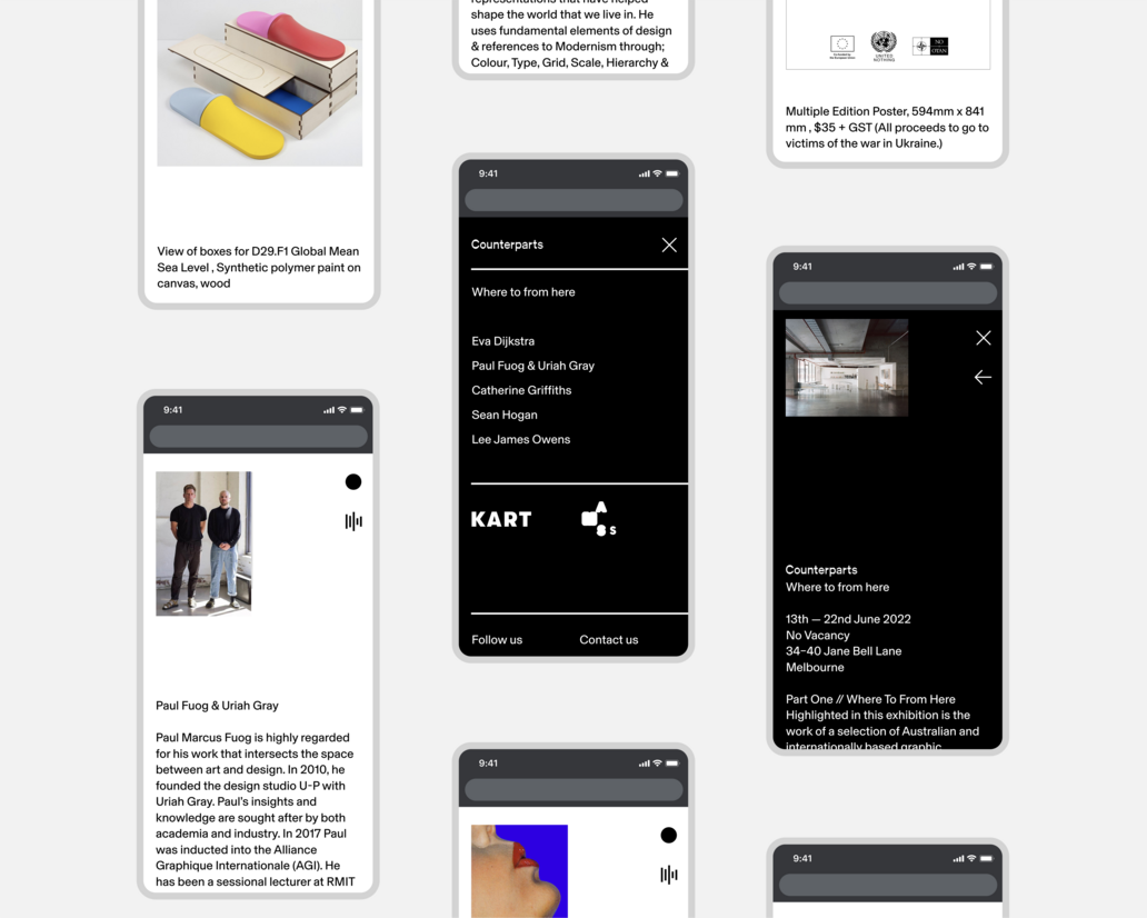 NB: Website screengrabs include artwork from participating artists: Eva Dijkstra, Paul Fuog & Uriah Gray, Catherine Griffiths, Sean Hogan, and Lee James Owens.