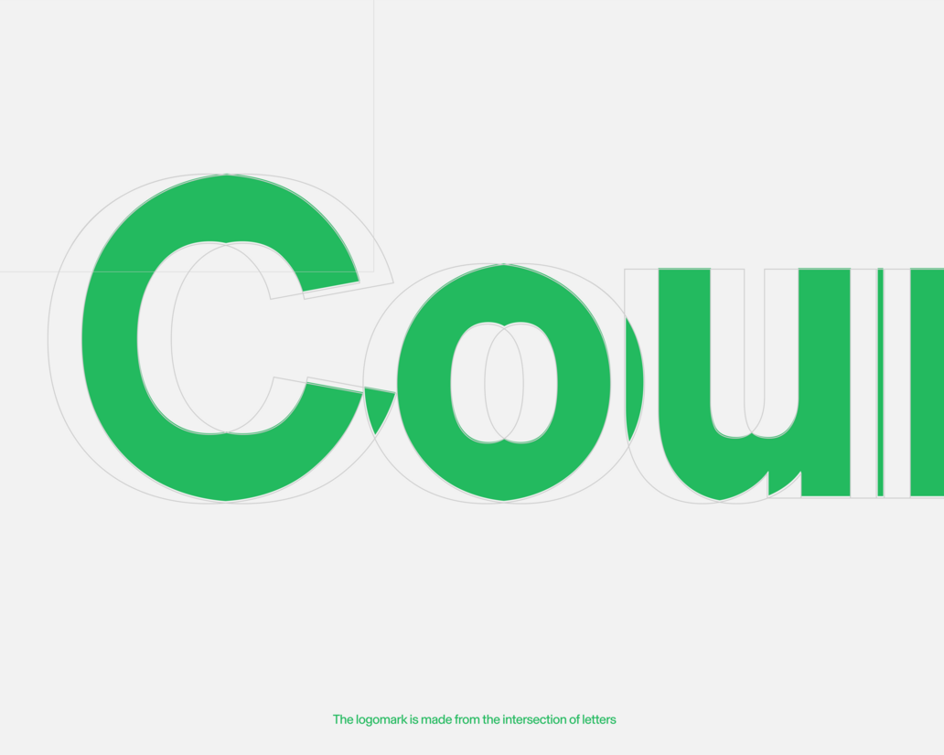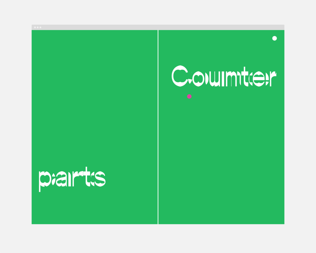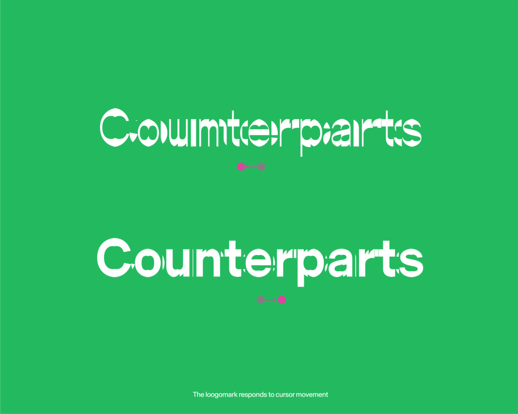 The logomark was created by overlapping the word “Counterparts” and rendering the intersecting shapes to create new letterforms, which change with input from the user, becoming more or less abstract as the user moves their cursor left and right.