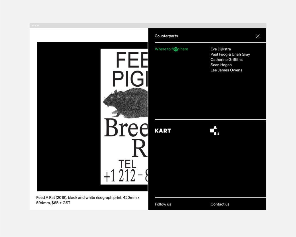 We created the identity and designed the website for an upcoming exhibition called “Counterparts”. The exhibition and conversation series presents the work of six prominent designers and explores the intersection of their personal and professional practices.