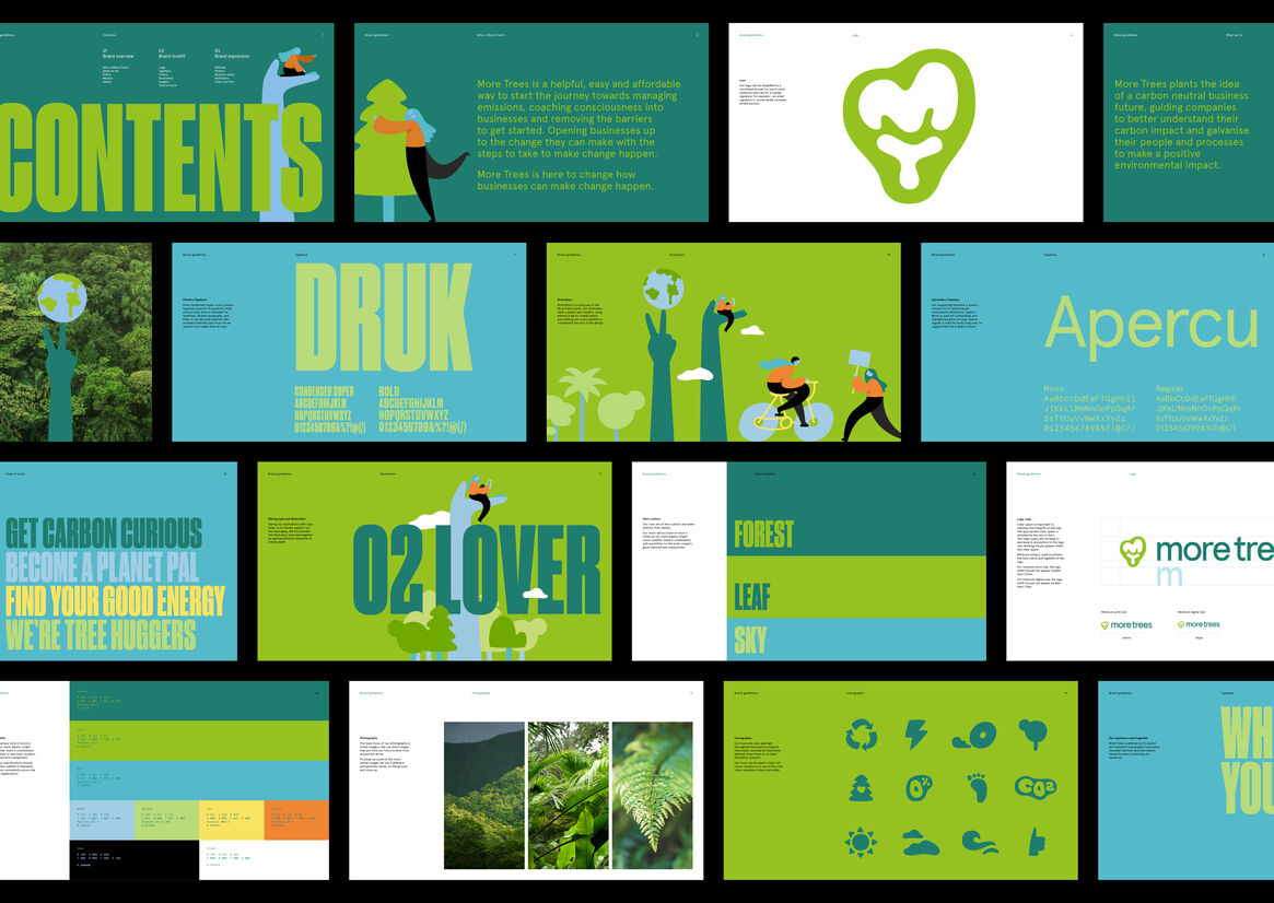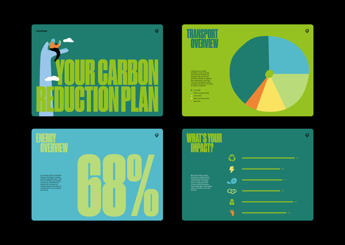 No-one said it would be easy though. Of all the compliance and regulatory obligations faced by businesses, emission calculations are the most complex to quantify and easiest to overlook (just ask a few world leaders and Governments). But change can start with tiny actions, so we set about creating an intricately crafted identity system for More Trees that was accessible and optimistic, and at the same time, one which spoke loud and clear to its audience.