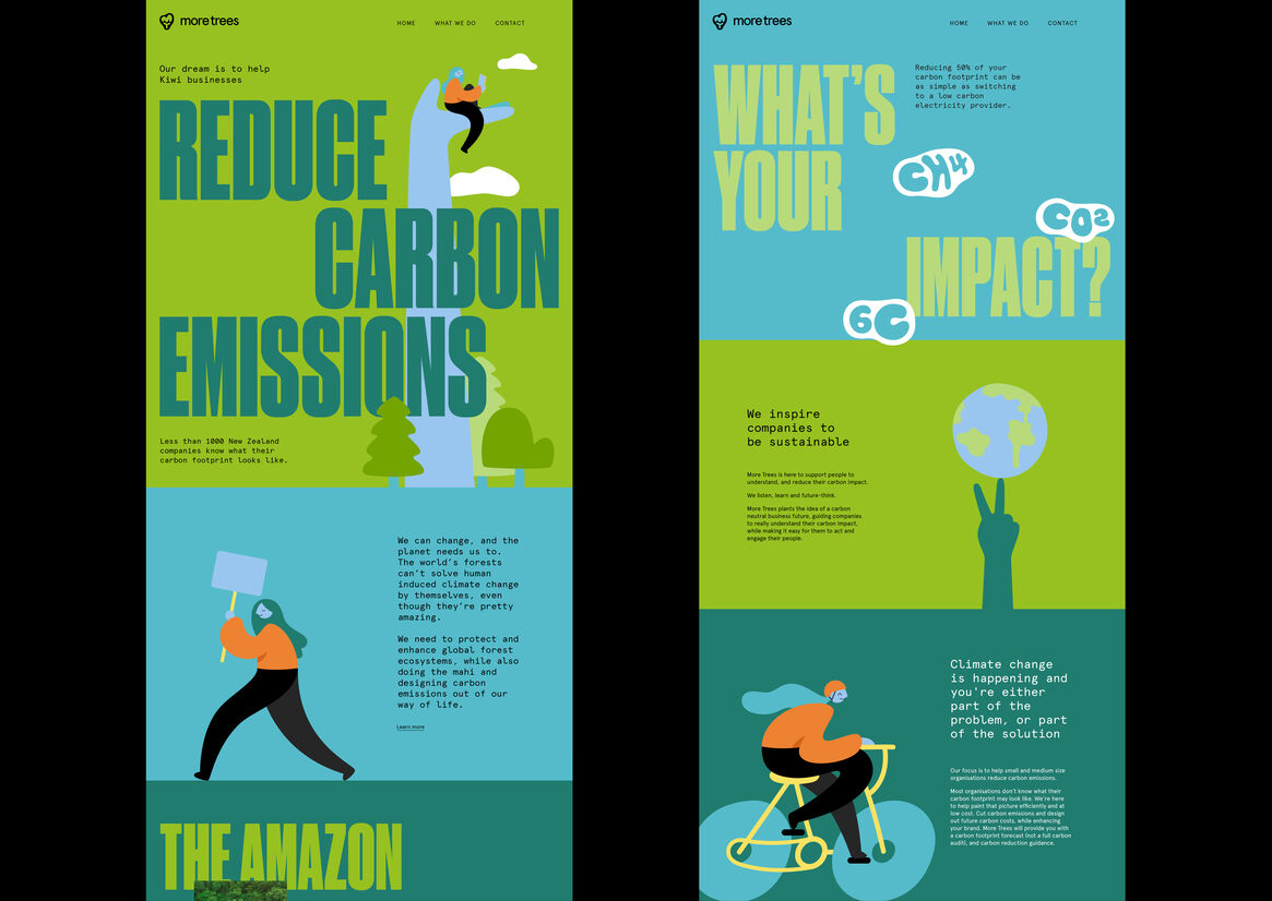 More Trees doesn't waste any gas in conversation - “get to the point” messaging is emphatic with unambiguously bold and directive typography - assertive and empowering because we all know there’s no time to muck around on this one.