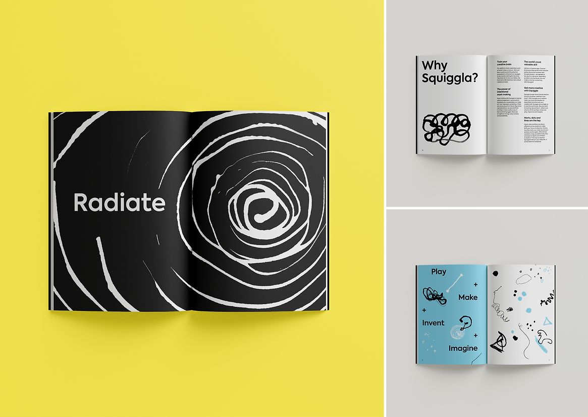 The Squiggla brand aims to be accessible and non-threatening to a broad audience, young and old alike. This is because many people decide early in life that they ‘can’t draw’ and therefore ‘aren’t creative’. The brand lowers the barrier to trying, framing the variety of Squigglaworks without competing with them. The complexity of the works dictated a simple, purposeful brand solution providing structure and meaning.