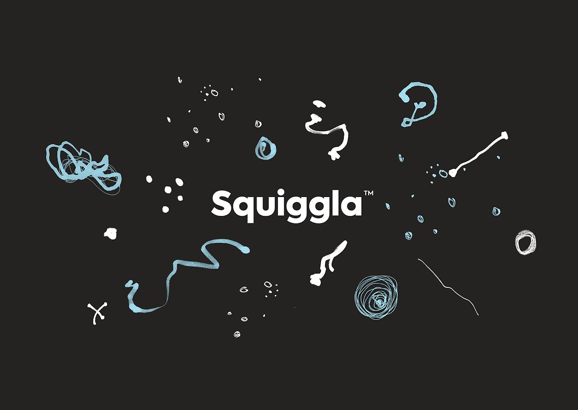 The name Squiggla, memorable and fun, reinforces the physical mark-making activity. The logo mark is clear and bold, able to stand out from surrounding hand-drawn marks, and is appealing to both children and adults.