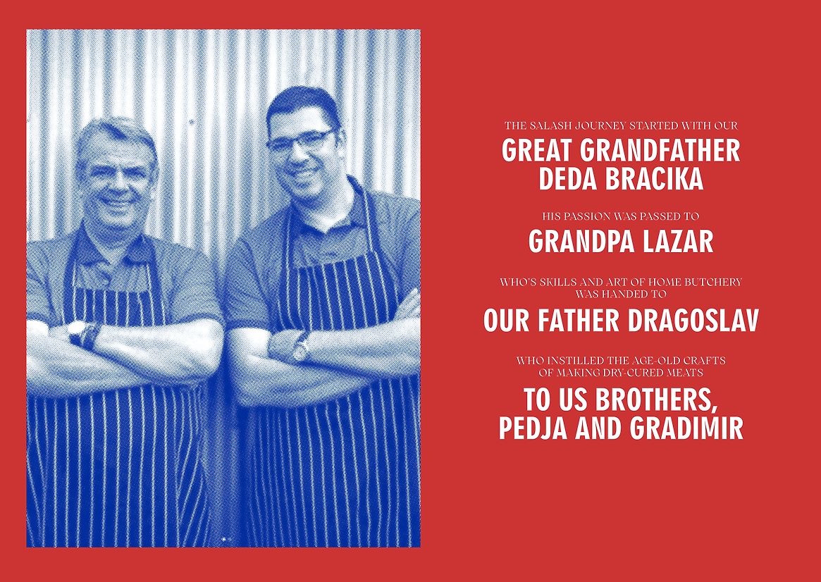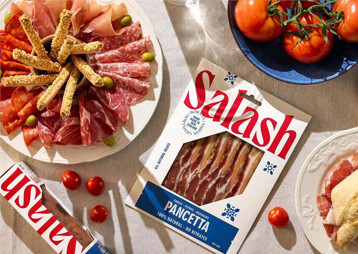 Salash Delicatessen is uniquely positioned as a small artisan food business in the New Zealand market. While there is a wide range of brands, both large and small, producing smallgood meats, they all offer a similar range of cuts, flavours and styles which cater to the wider New Zealand consumer. Salash's point of difference is their family history and geographic origins. Hailing from Northern Serbia, the family have been refining how they make and produce dry-cured meats in the Northern Serbian way for four generations. This imbues the meats with unique flavours and textures.