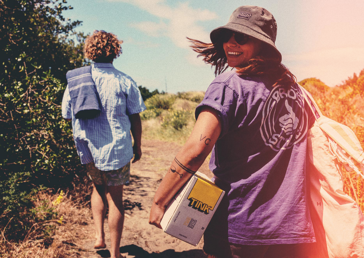 Anyway, who's it for? It's a seltzer so it doesn't pass judgement, but they're typically skewed towards the female demo. Dunno why, seltzers are easy going, natural and low guilt. Oh yeah that's us! Tink is for anyone looking for a chill time. Super casual kids (actually adults) that don't sacrifice on style...they're cool baby. If we had to describe the feel it's part 70s fashion magazine, part The Endless Summer film. We don't like to think we're on trend because being cool is timeless. Right Dad!